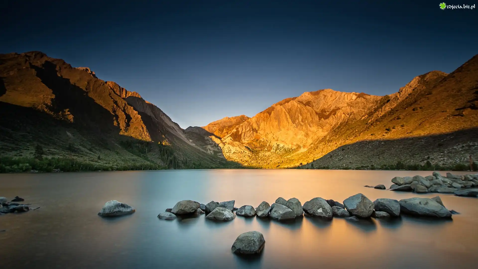 Zdjęcie Góry, Rzeka, Kamienie, Przebijające, Światło