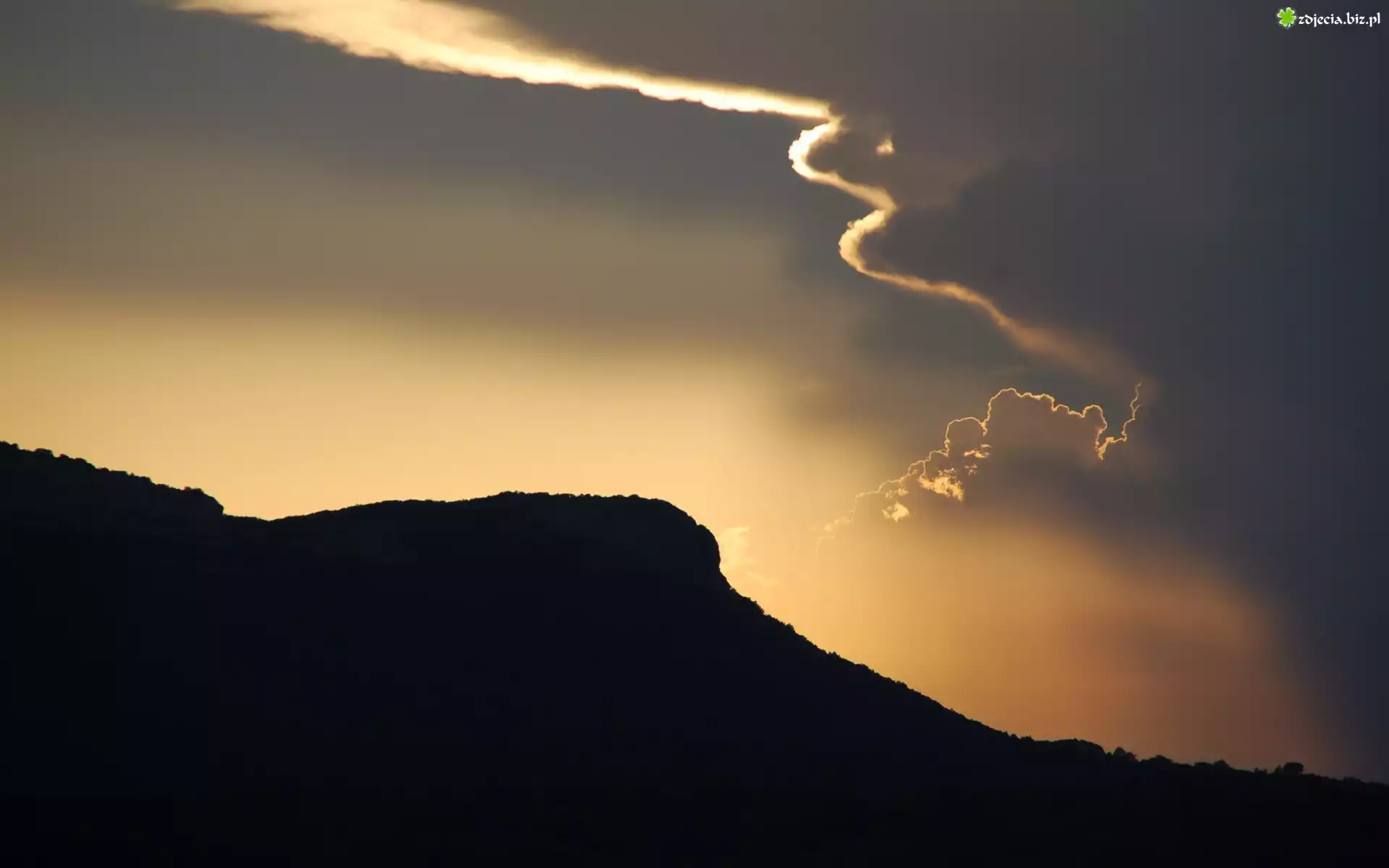 Zdjęcie Góry, Zachód, Słońca, Chmury, Przebijające, Światło