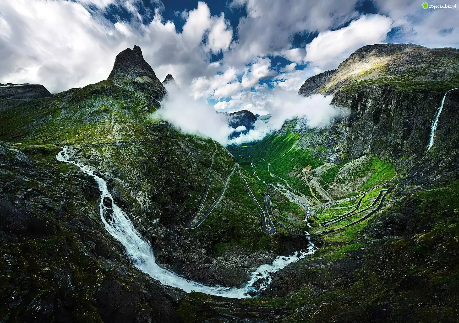 Zdjęcie Góry, Chmury, Przełęcz, Strumyk