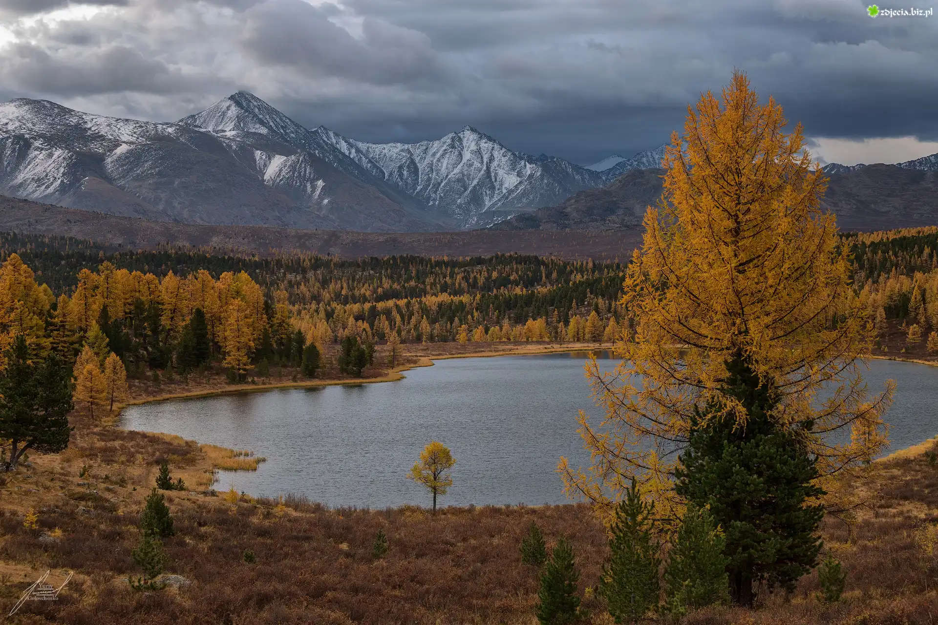 Zdjęcie Jesień, Góry, Jezioro Kidelyu, Drzewa, Modrzew, Ałtaj, Rosja