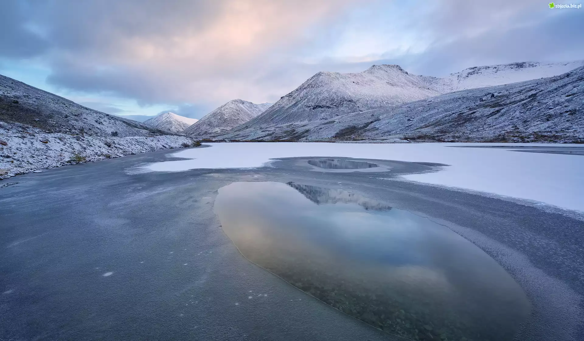 Zdjęcie, Zima, Góry Chibiny, Jezioro Serdtsevidnoye, Obwód murmański, Rosja