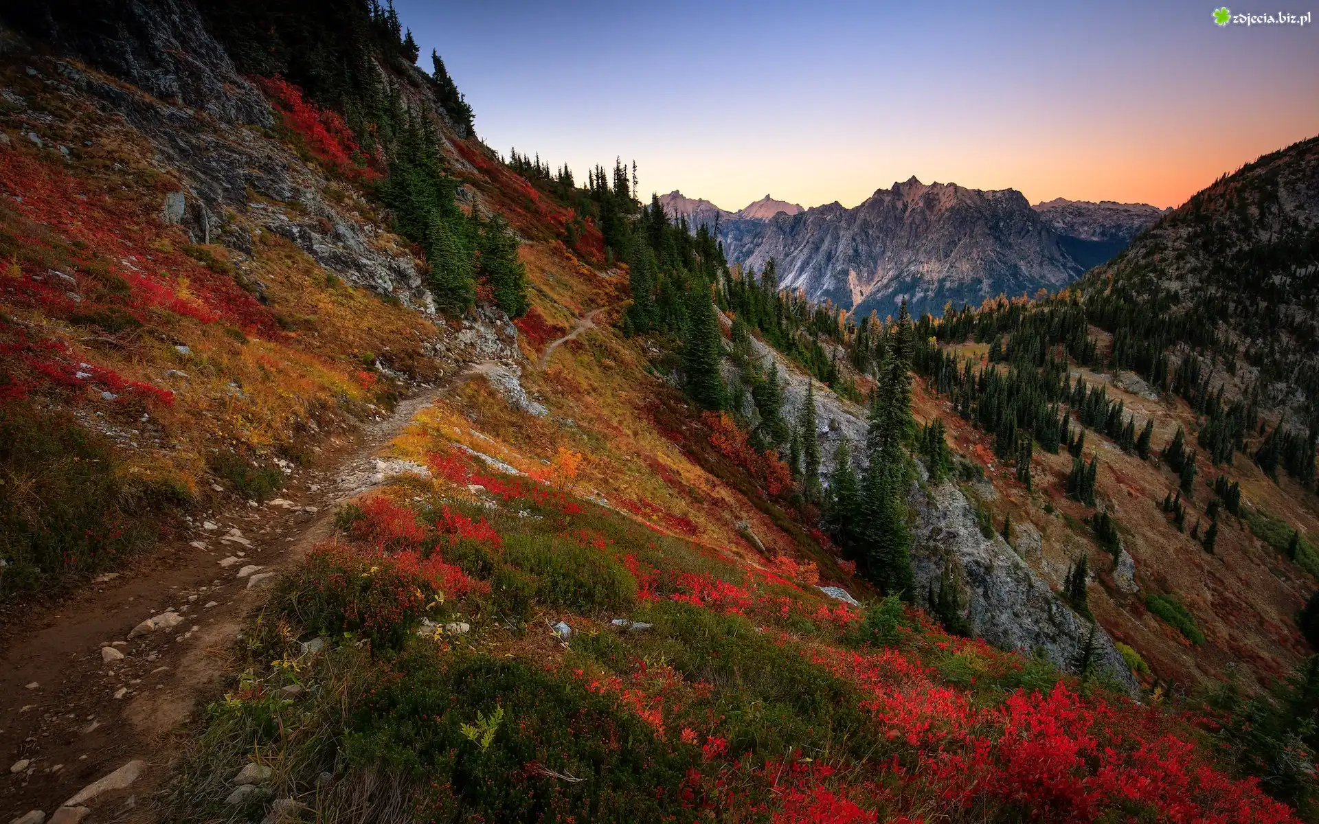 Zdjęcie Góry, Jesień, Kolorowa, Roślinność, Ścieżka