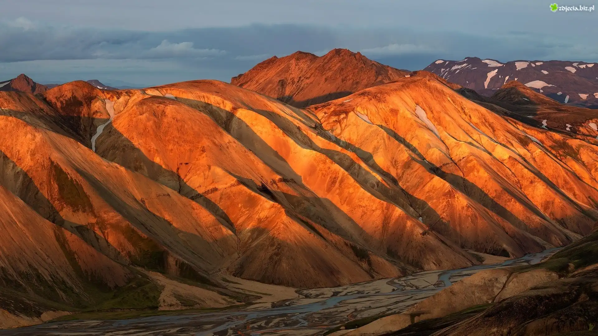 Zdjęcie, Góry, Wulkan Blahnjukur, Rzeka, Islandia