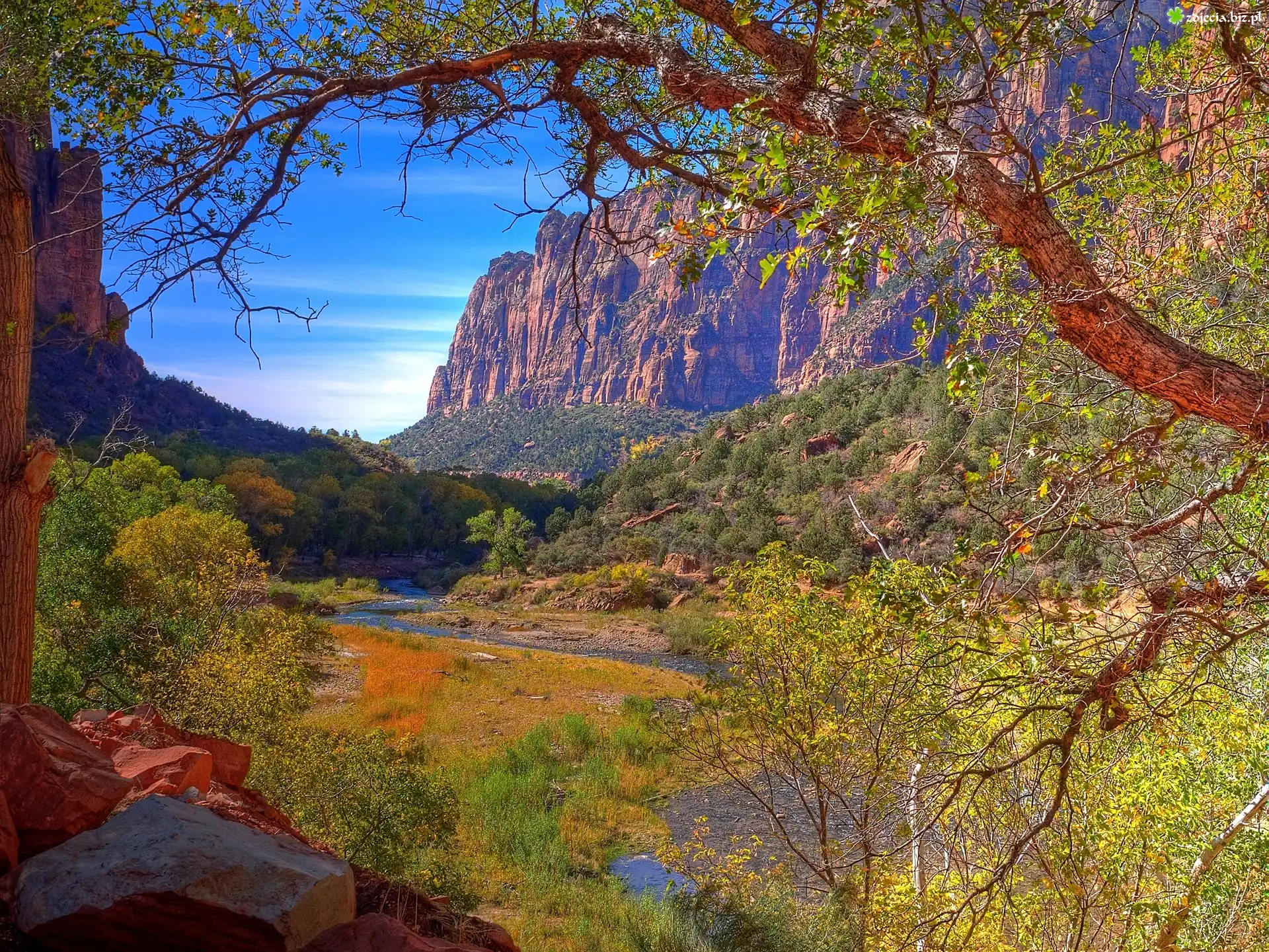 Zdjęcie Rzeka, Góry, Drzewa