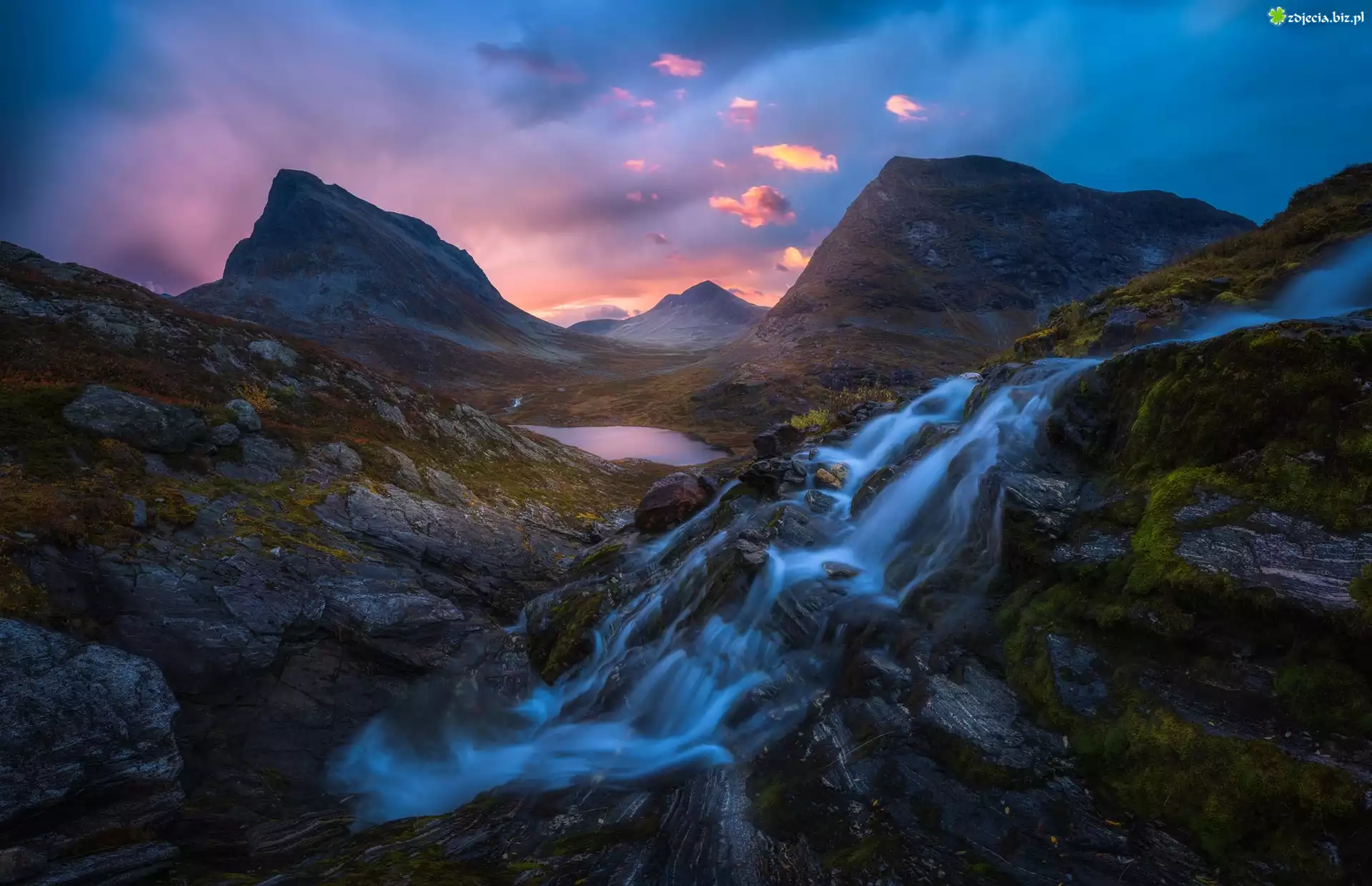 Zdjęcie, Góry, Jezioro, Strumień, Skały, Kamienie
