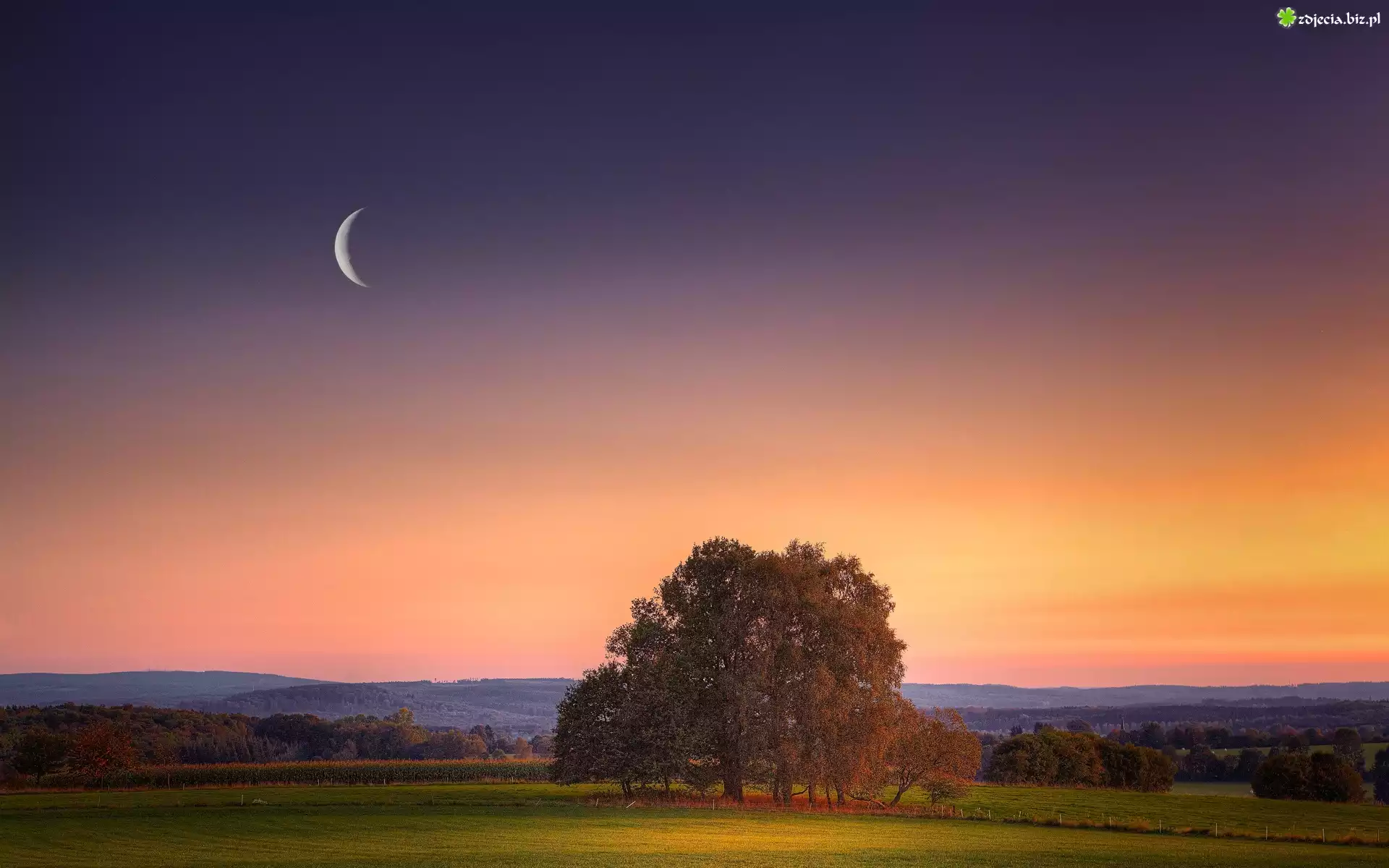 Zdjęcie Góry, Lasy, Łąki, Zachód, Słońca, Jesień