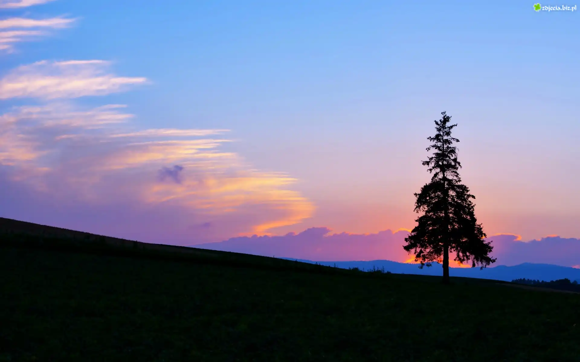 Zdjęcie Góry, Wschód, Słońca, Drzewo