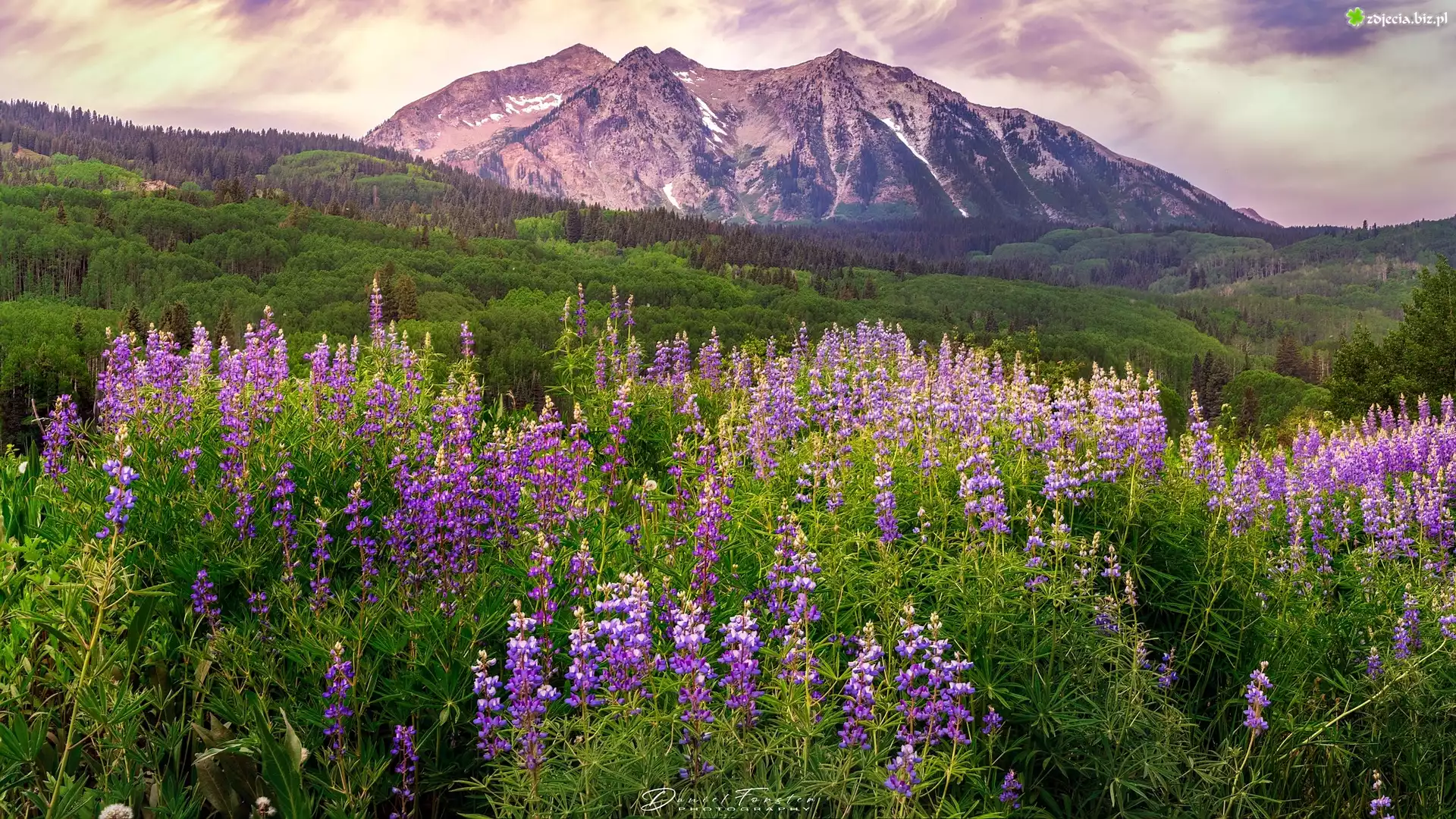Zdjęcie Park Narodowy Mount Rainier, Stratowulkan Mount Rainier, Góry, Łąka, Kwiaty, Łubin, Stan Waszyngton, Stany Zjednoczone |