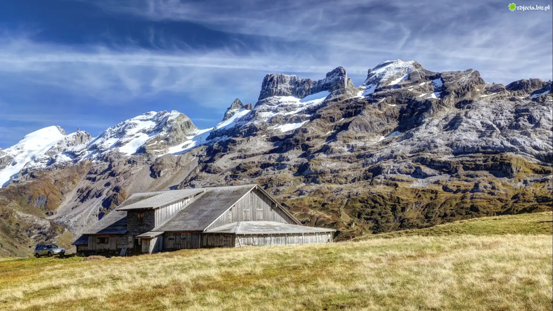 Zdjęcie Góry, Drewniana, Stodoła, Samochód