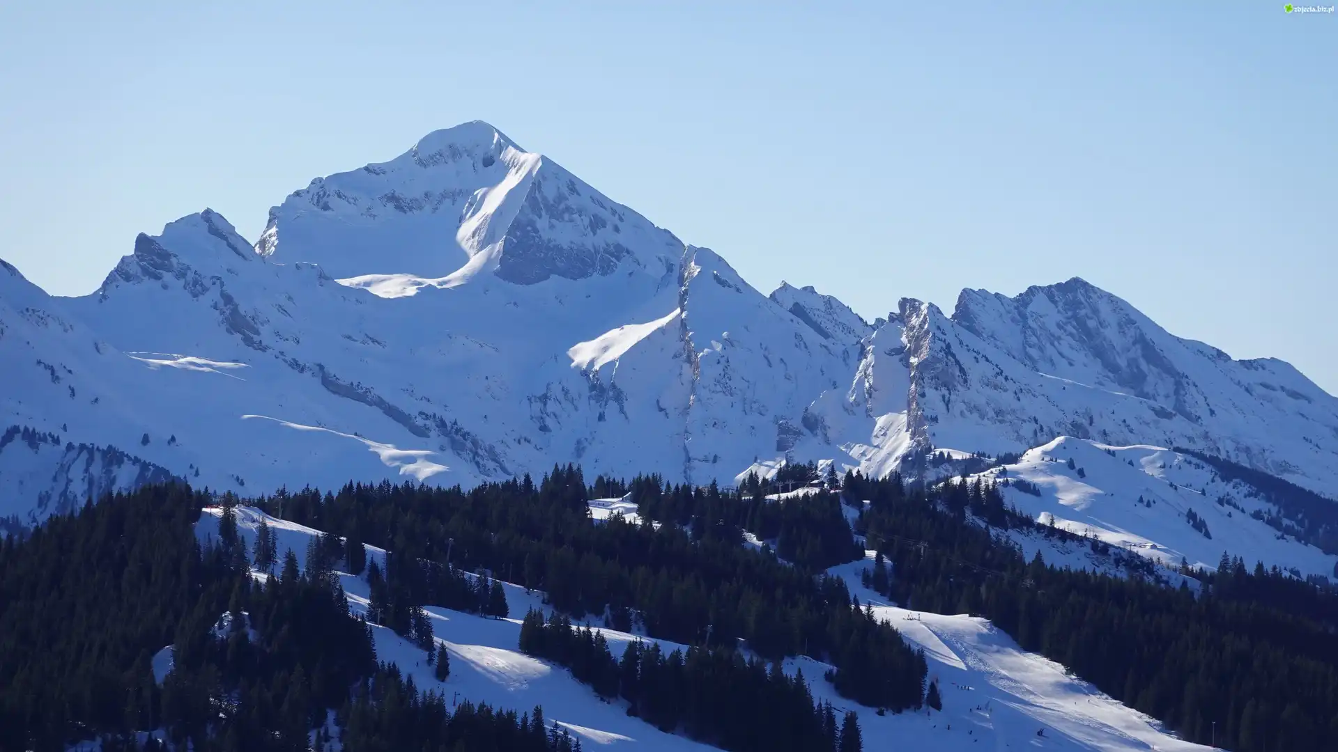 Zdjęcie Góry, Szczyt, Śnieg, Zima, Stok, Drzewa