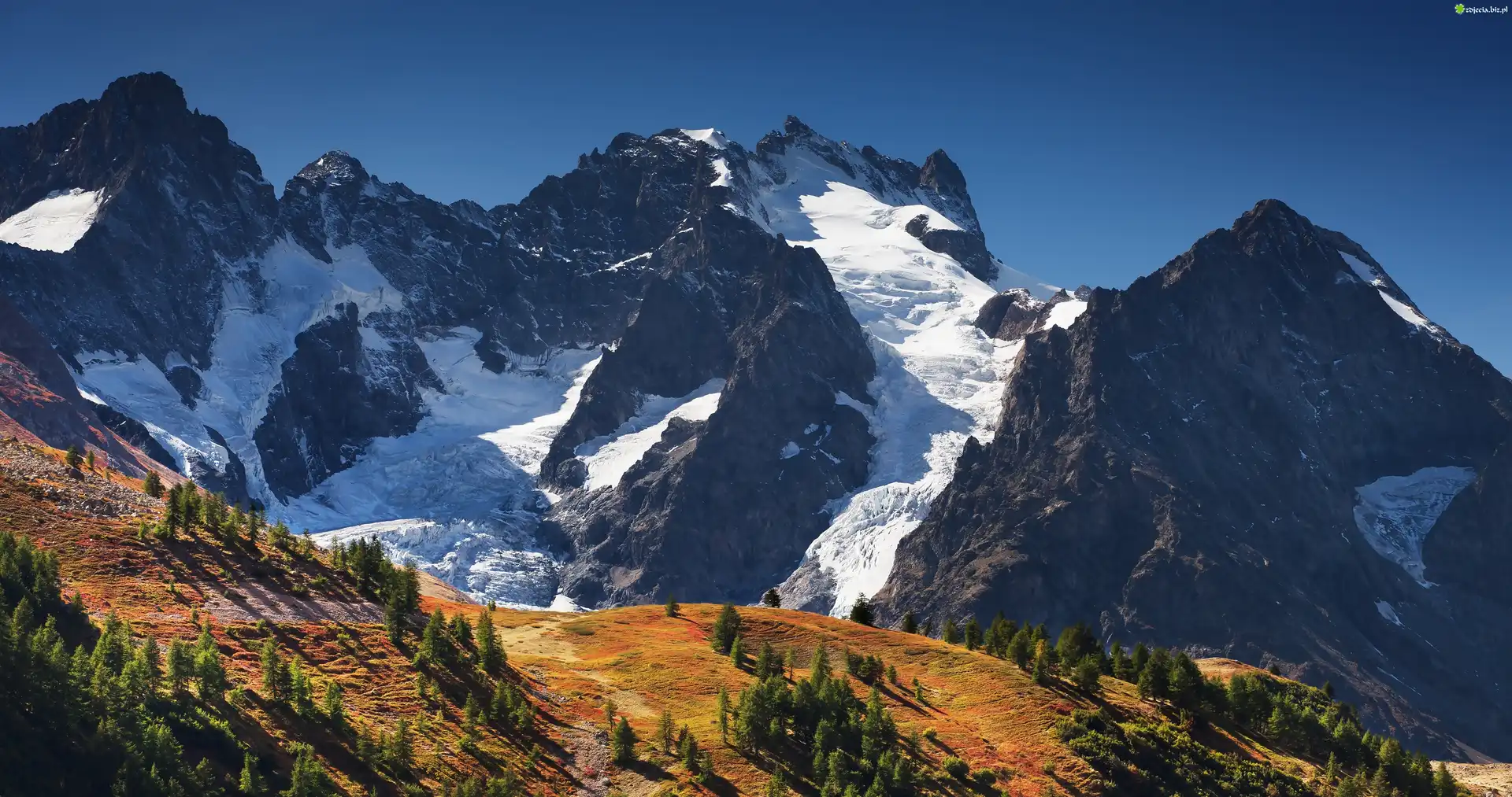 Zdjęcie Góry, Ośnieżone szczyty, Drzewa