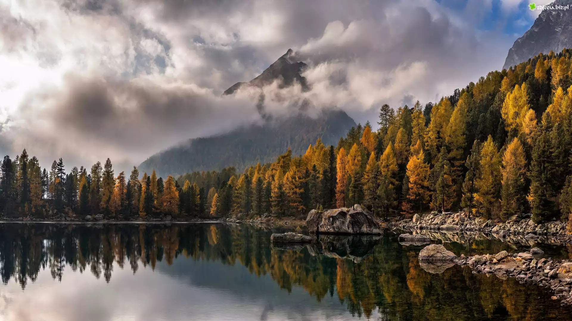 Zdjęcie Góry, Jezioro Lago di Saoseo, Dolina Valle di Campo, Las, Skały, Chmury, Kanton Ticino, Szwajcaria |