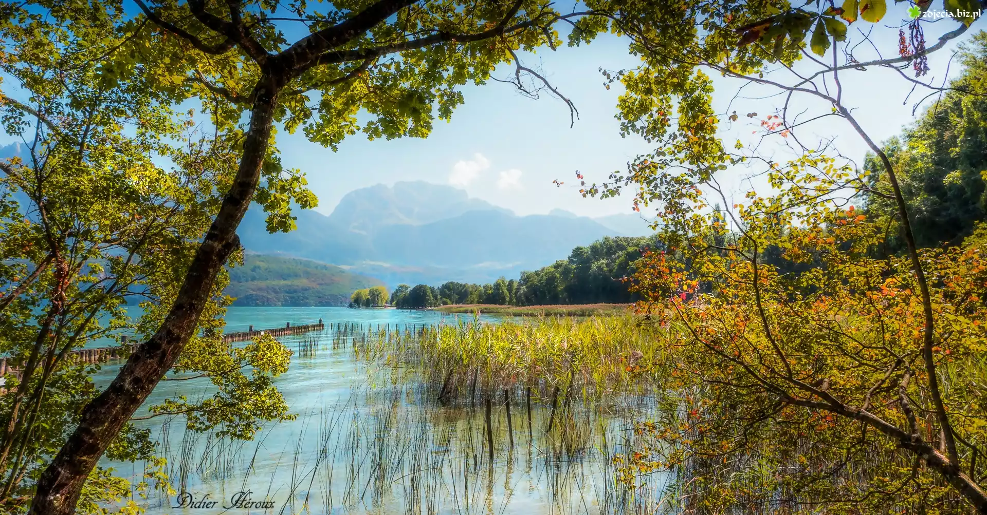 Zdjęcie Góry, Jezioro, Trawy, Drzewa