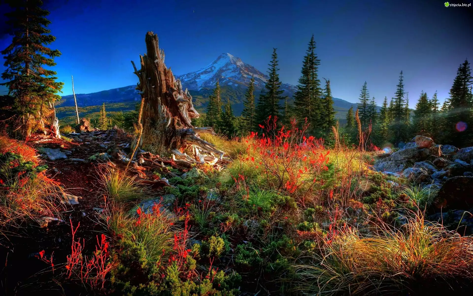 Zdjęcie Góry, Las, Pień, Trawy, Jesień