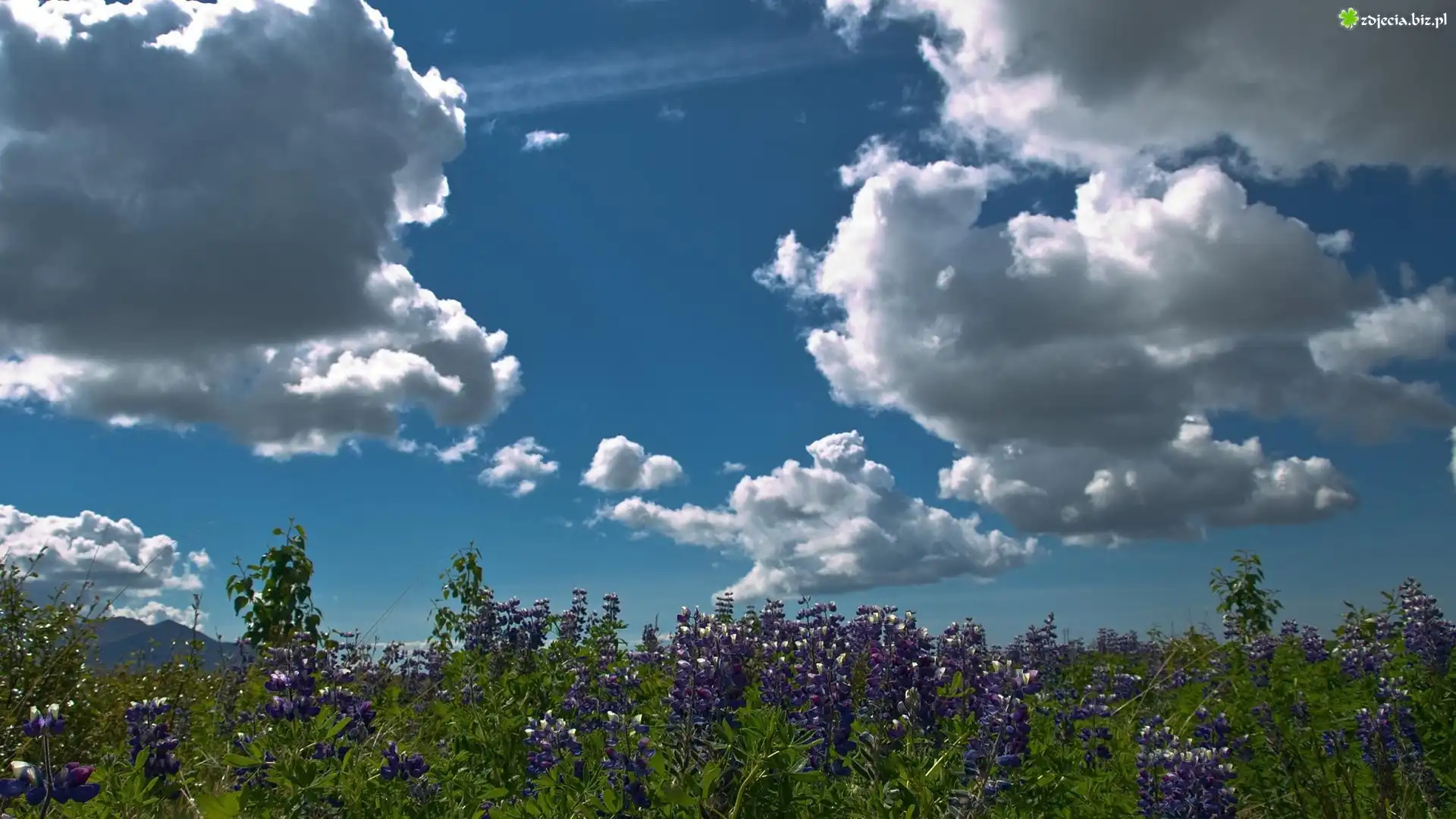 Zdjęcie Łąka, Łubin, Trawa, Góry, Chmury