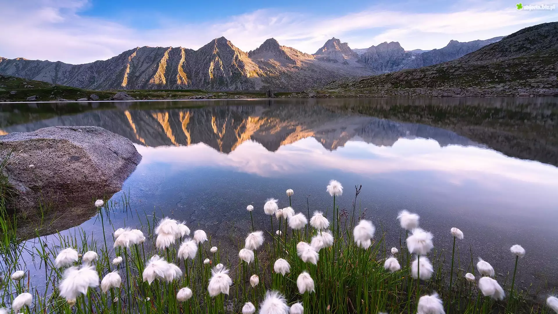 Zdjęcie, Góry, Jezioro, Rośliny, Wełnianki, Odbicie