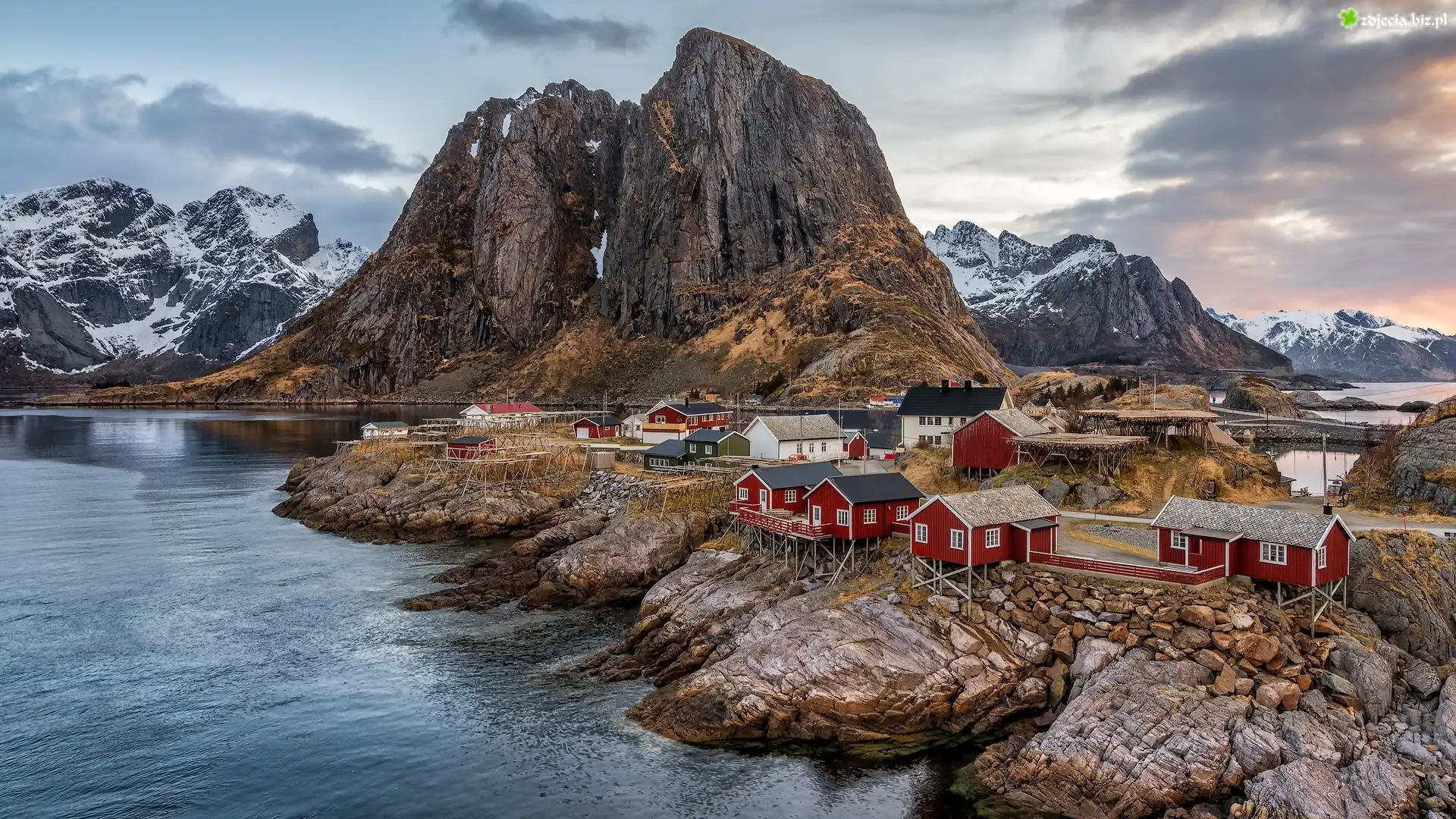 Zdjęcie, Norwegia, Lofoty, Wioska Reine, Wyspa Moskenesøya, Góry