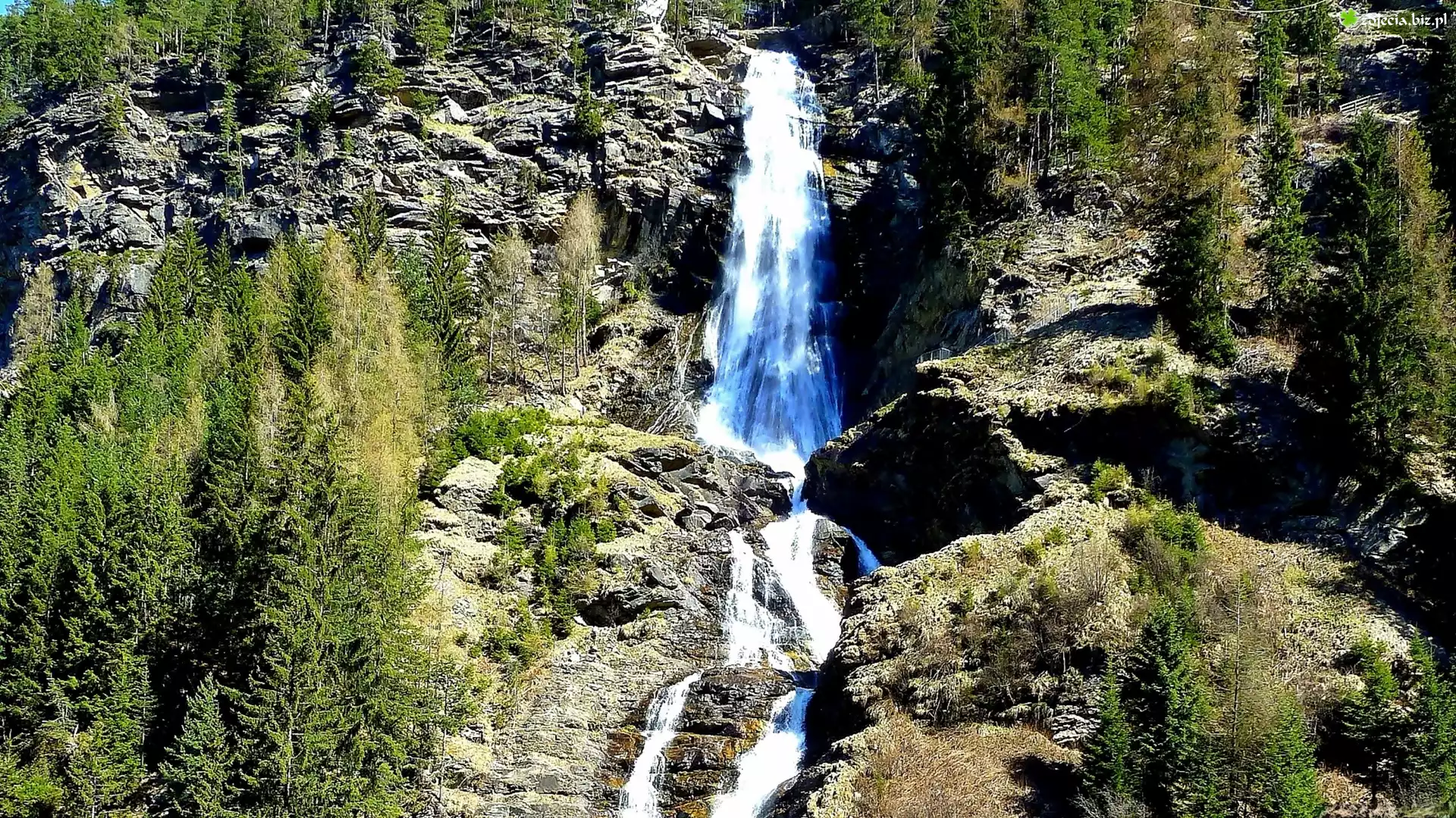 Zdjęcie Góry, Alpy, Skały, Las, Wodospad, Tyrol