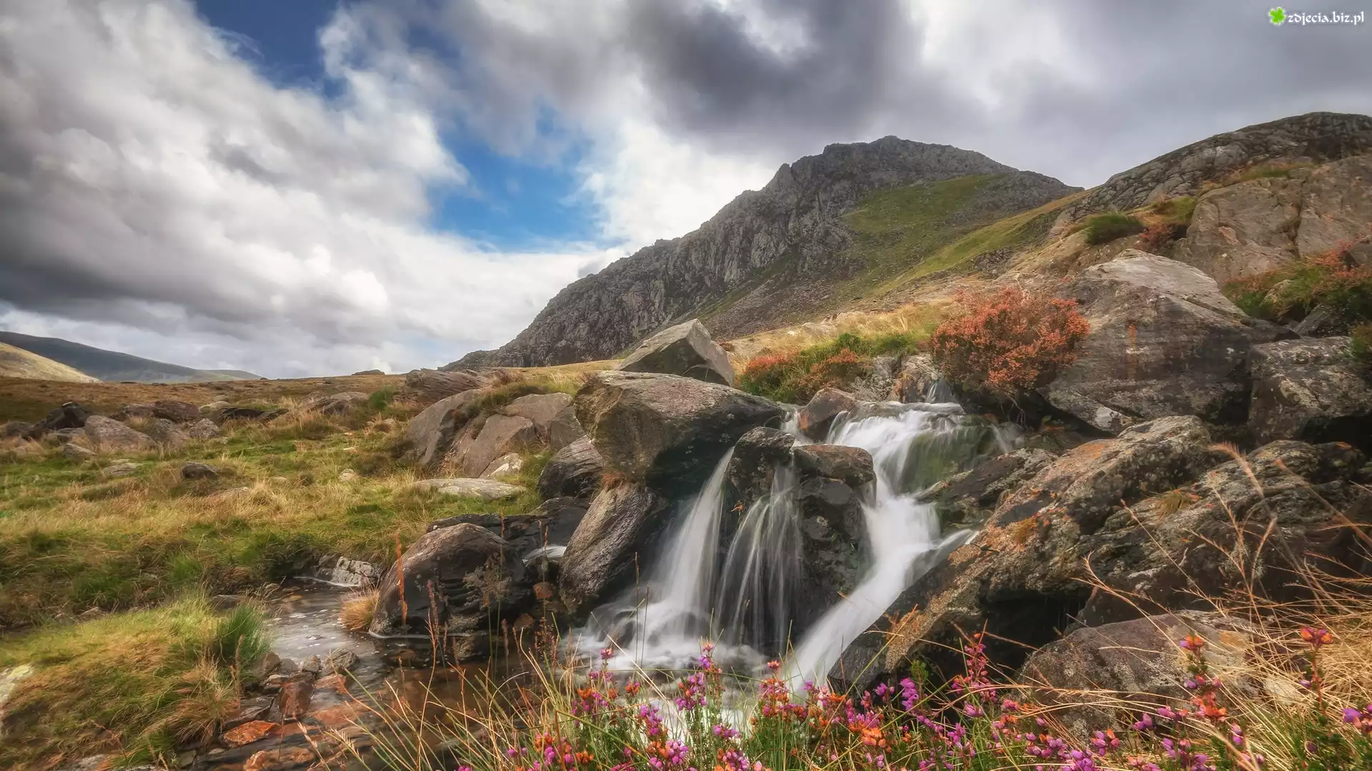 Zdjęcie Góry, Strumyk, Wodospad, Kamienie