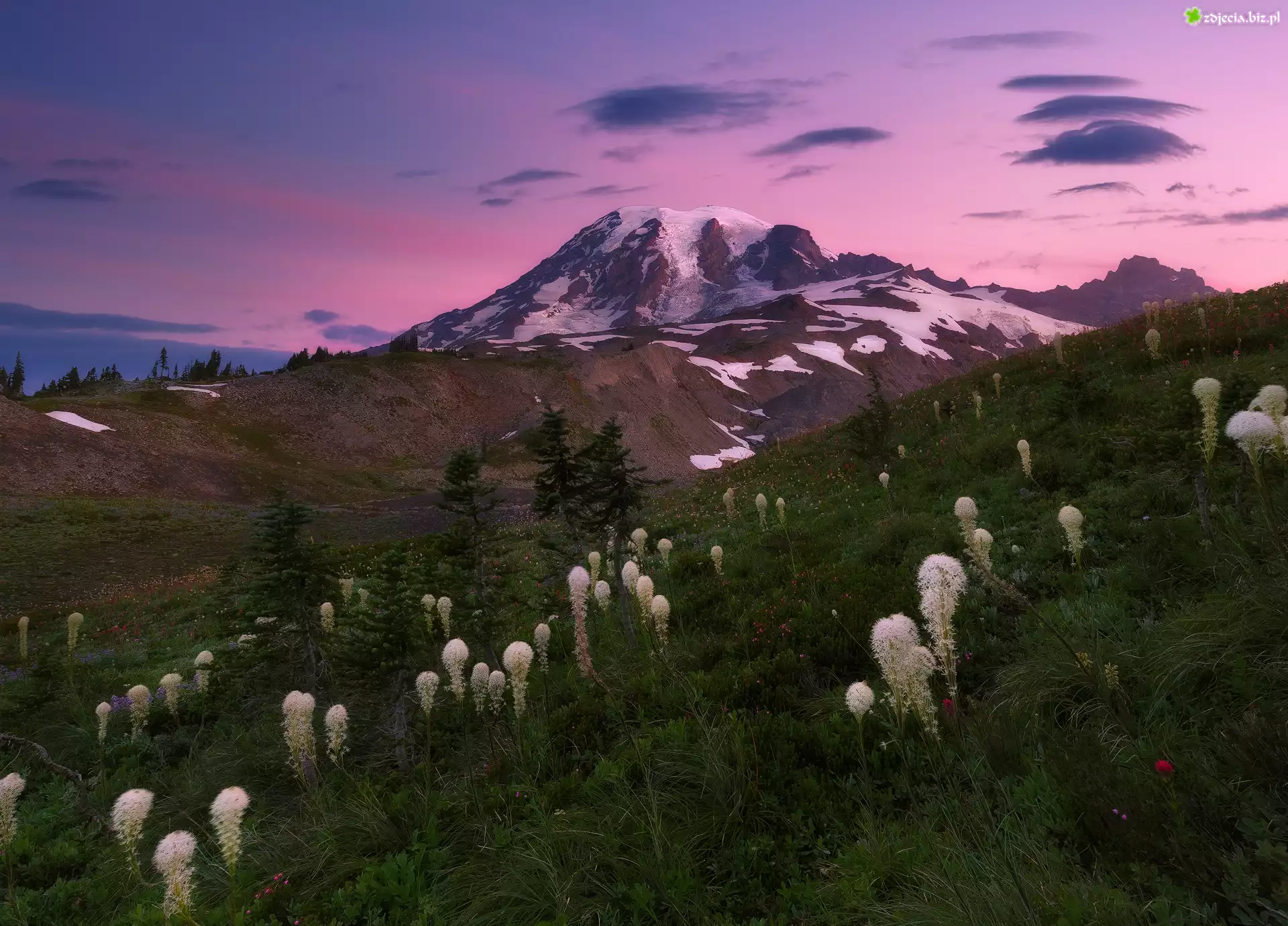 Zdjęcie, Góry, Łąka, Kwiaty, Wschód Słońca