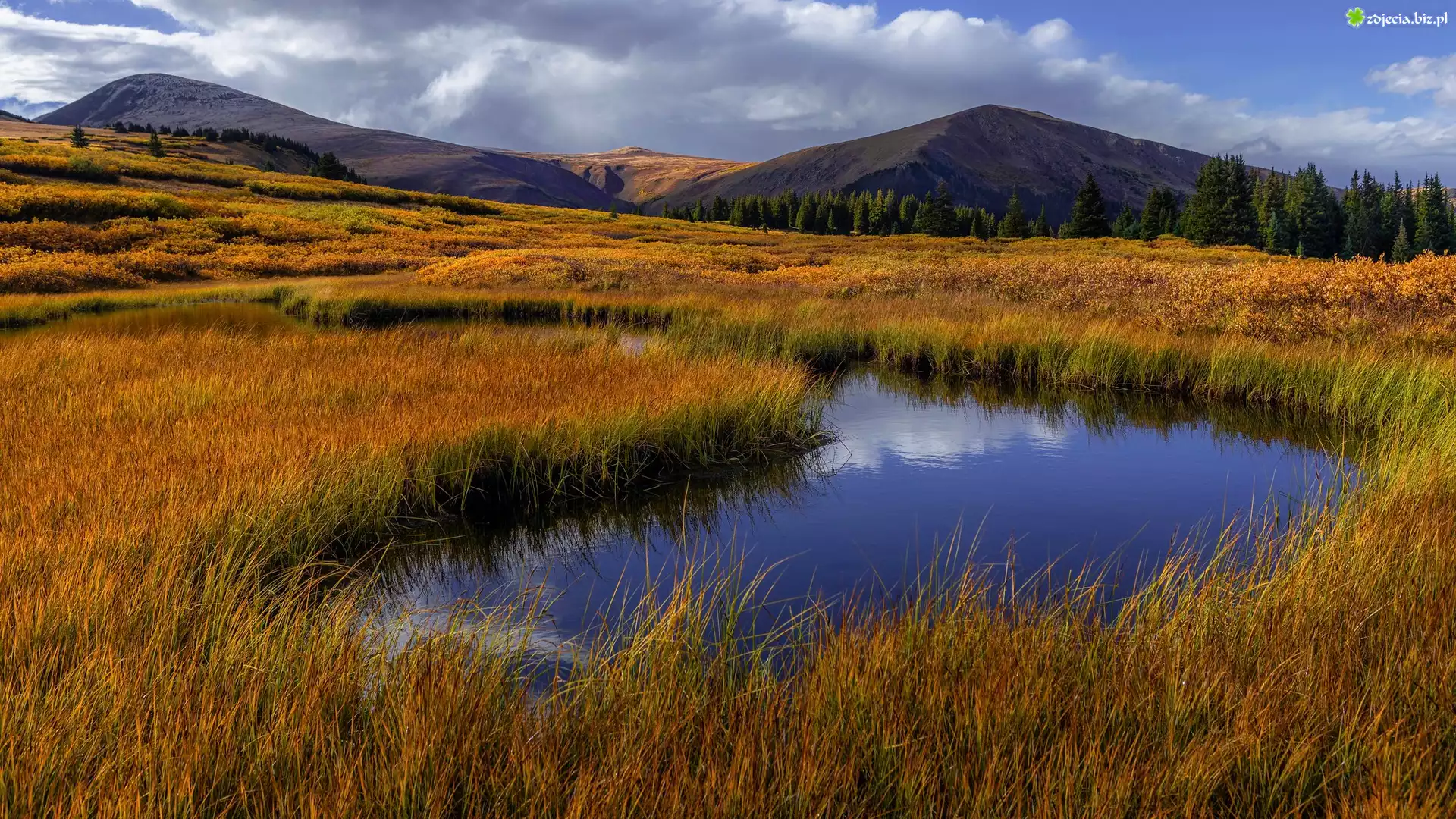 Zdjęcie Polana, Łąki, Wzgórze, Góry, Staw, Sucha, Trawa