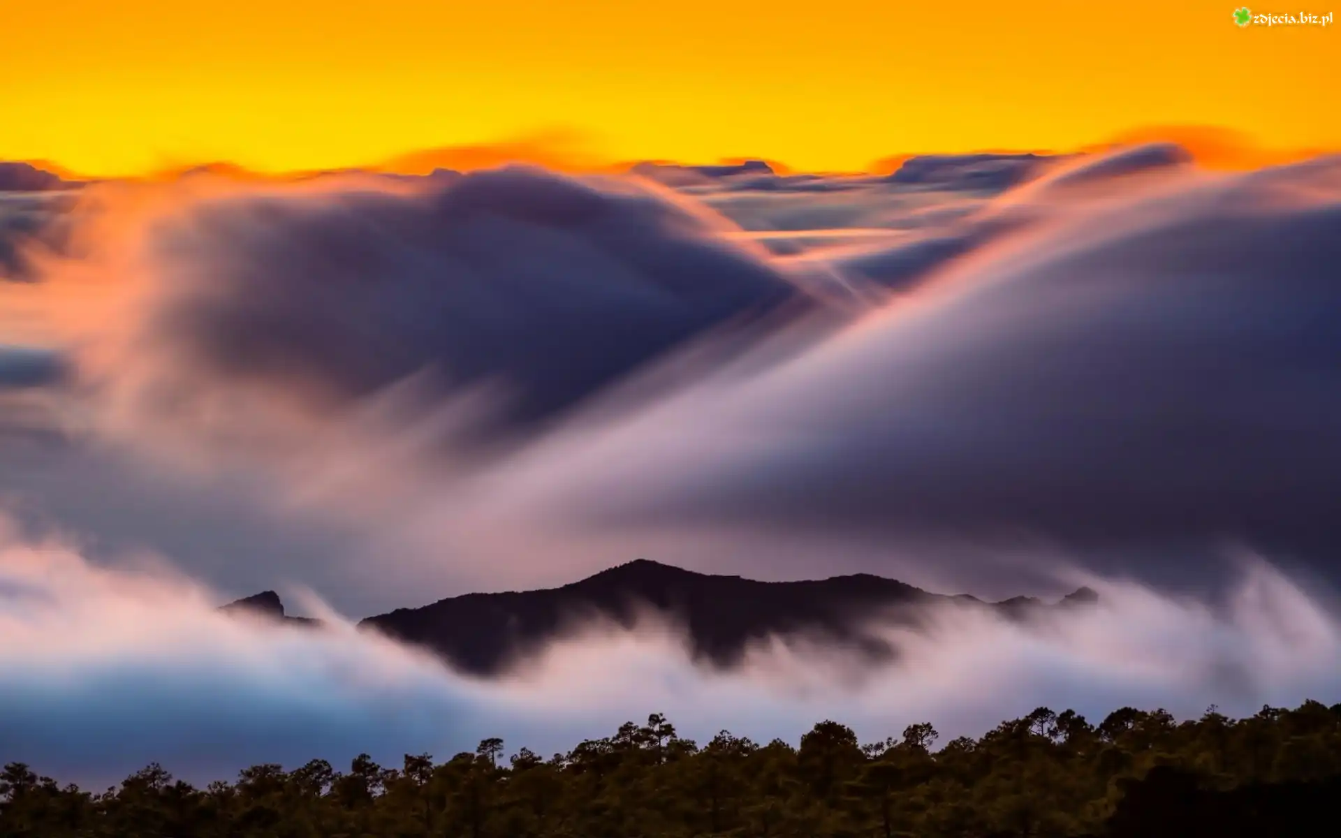 Zdjęcie Góry, Mgła, Zachód Słońca