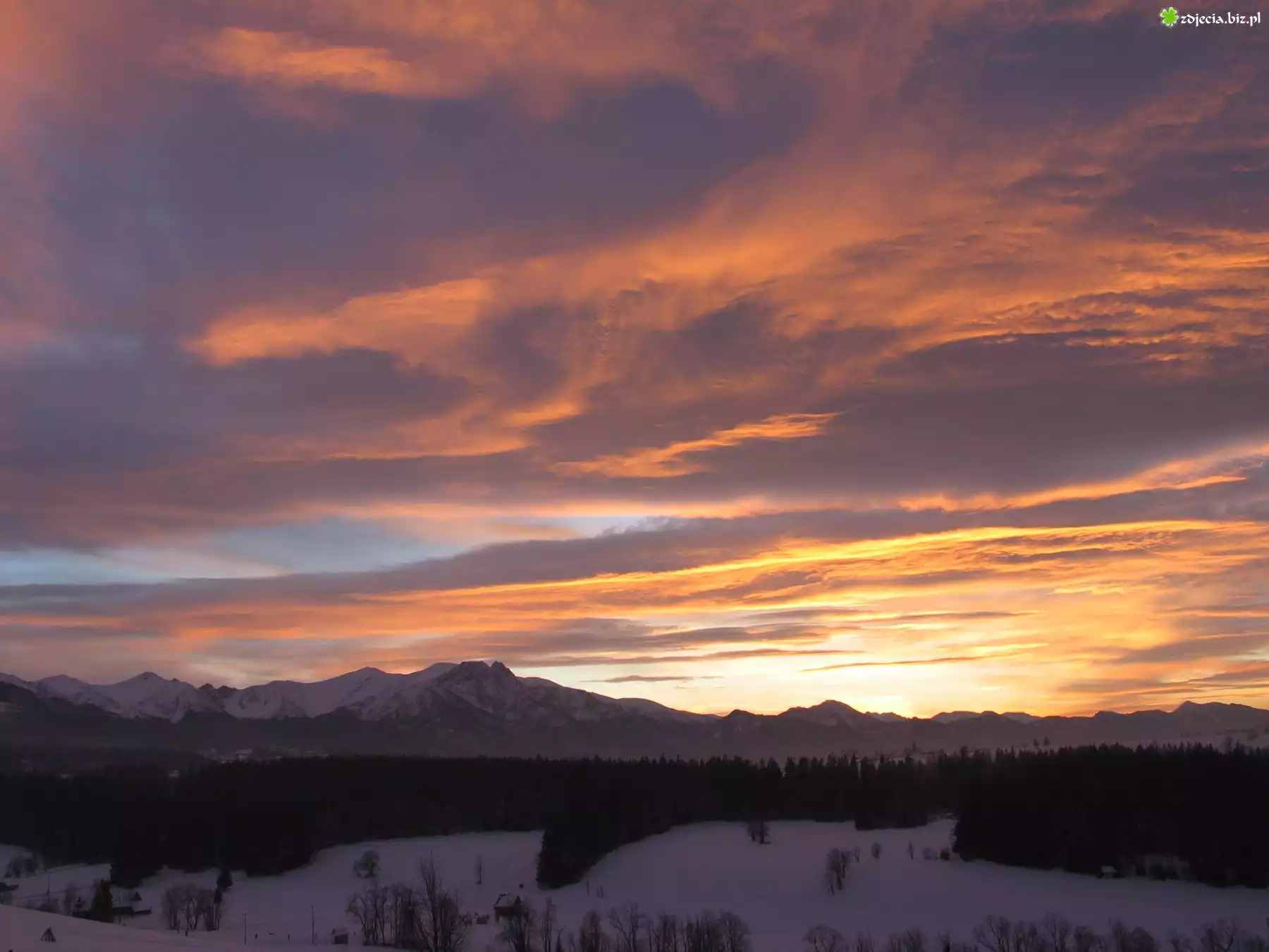 Zdjęcie Góry, Zima, Niebo, Zachód słońca