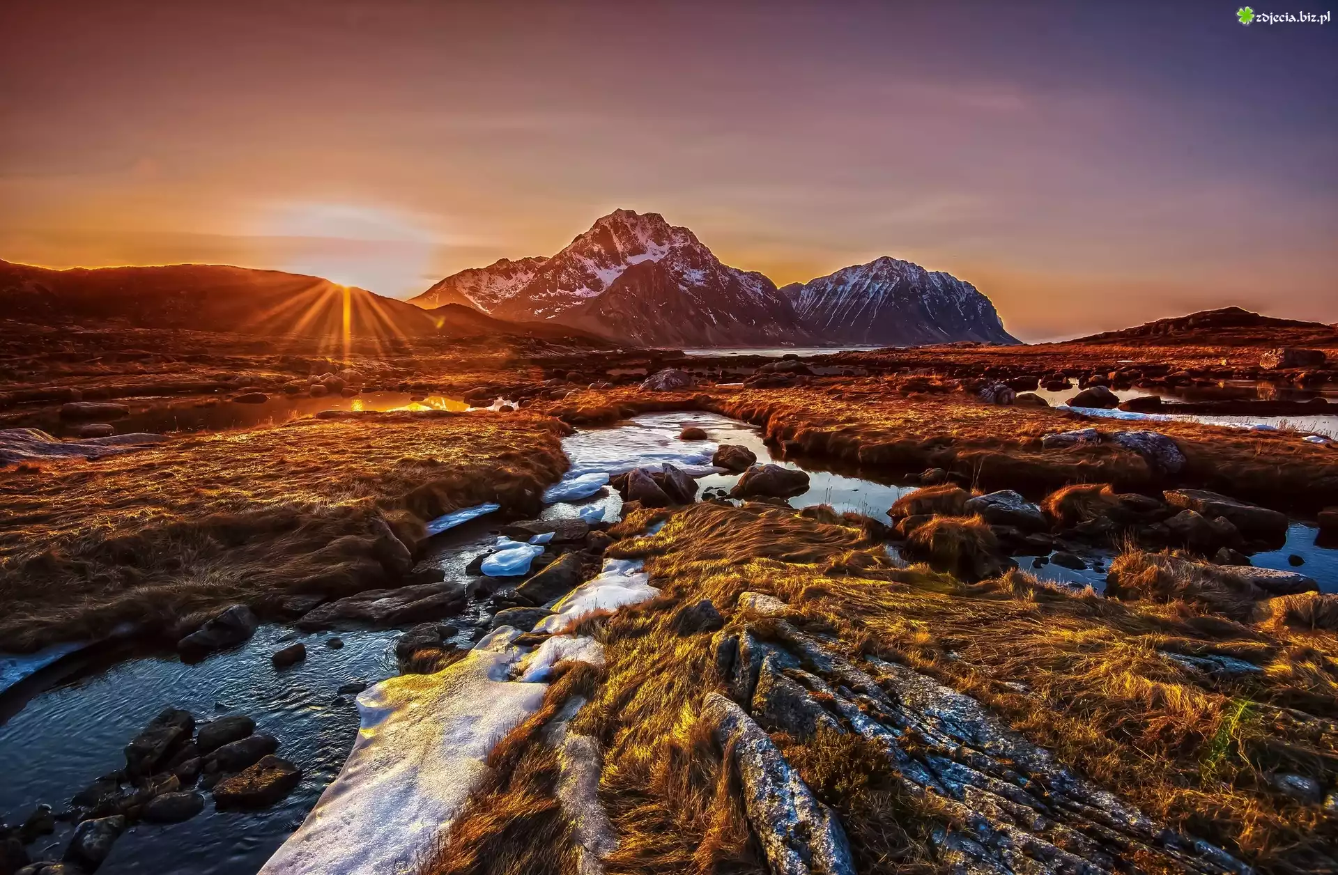 Zdjęcie, Góry, Rzeka, Zachód Słońca