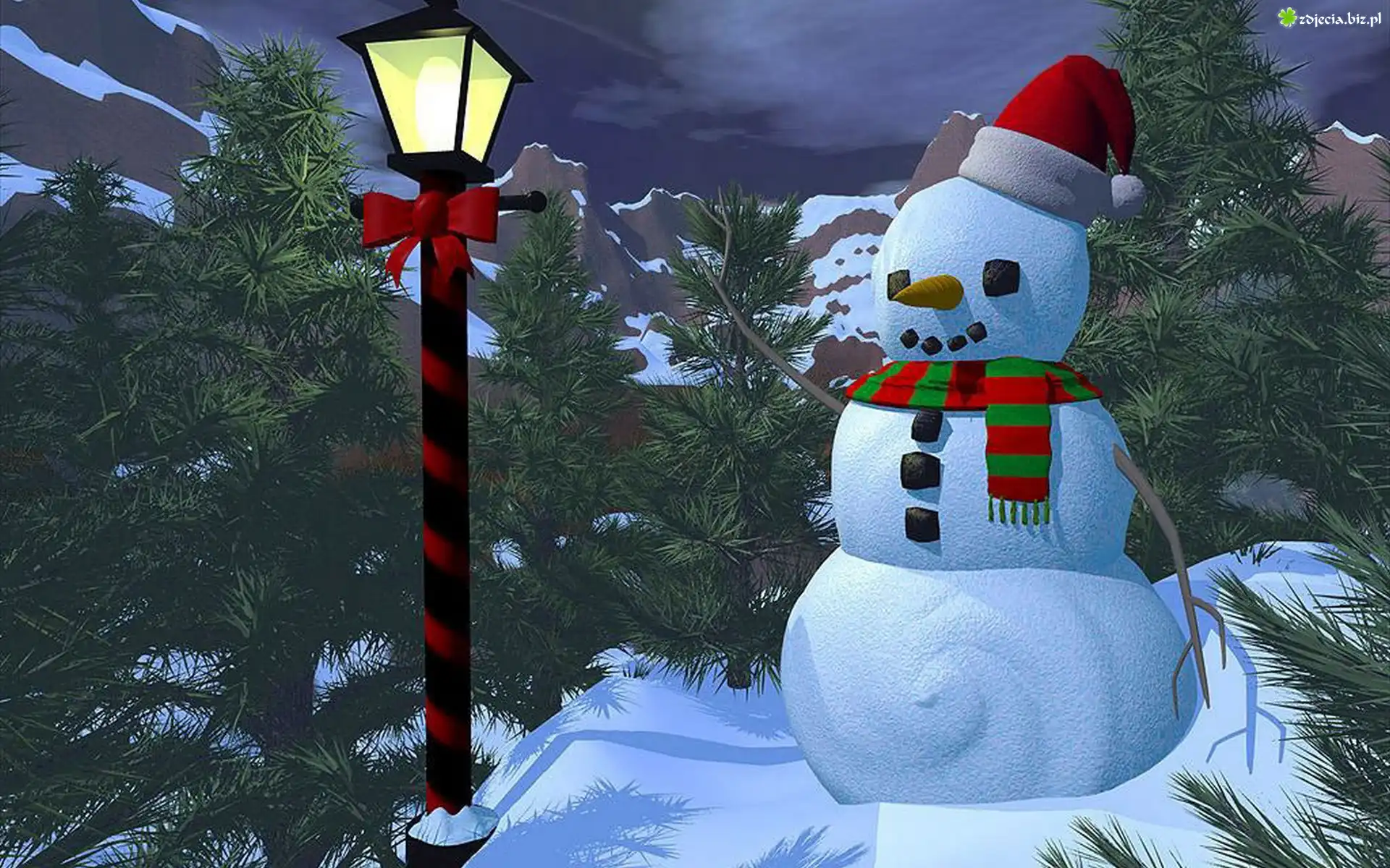 Zdjęcie Góry, Lasy, Bałwan, Zima, Grafika