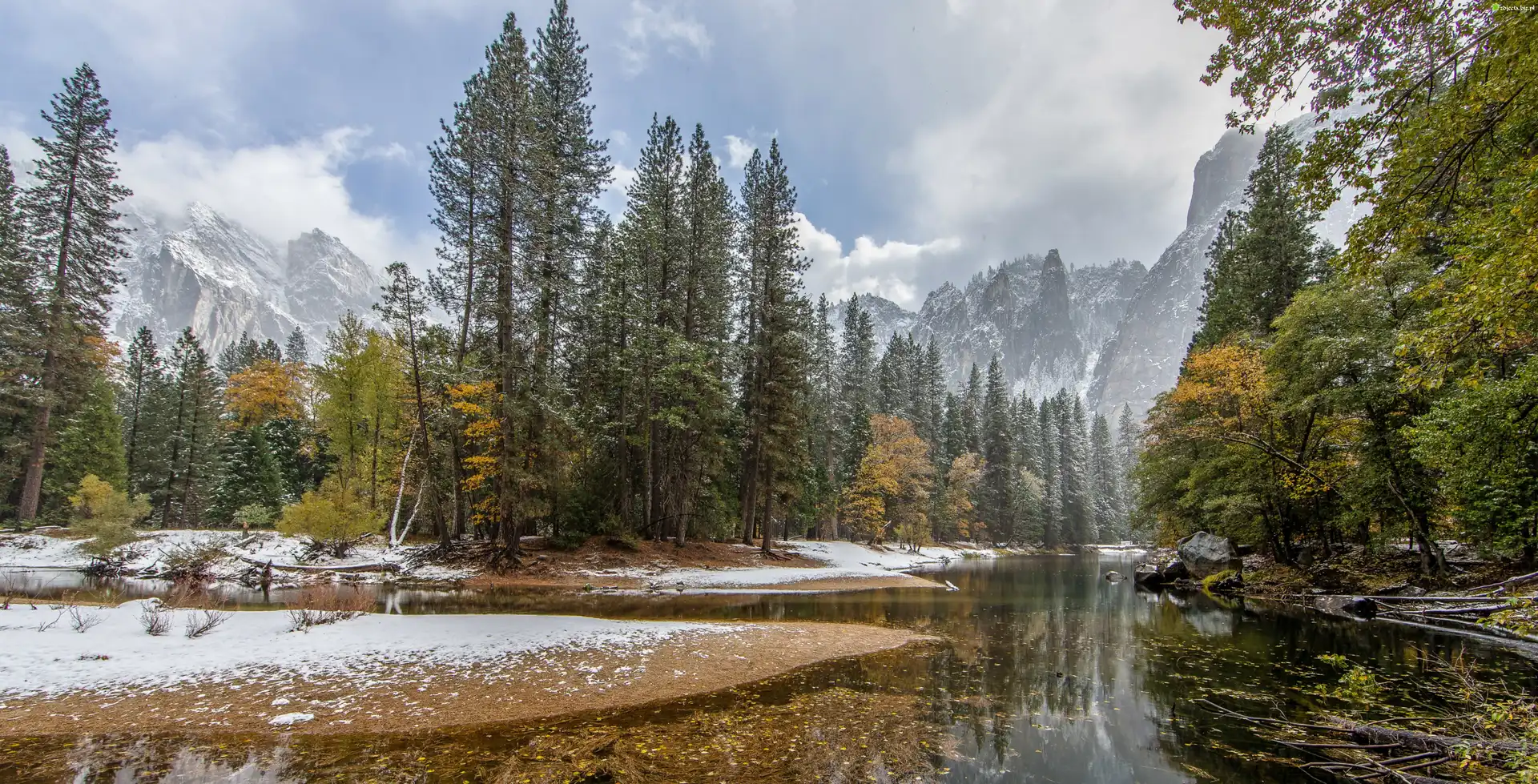Zdjęcie Góry, Las, Zima, Rzeka