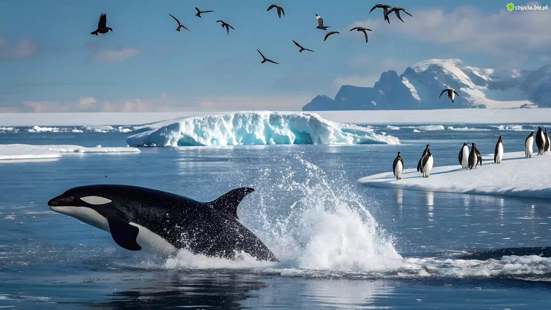 Zdjęcie Pingwiny, Orka, Morze, Góry, Ptaki, Zima