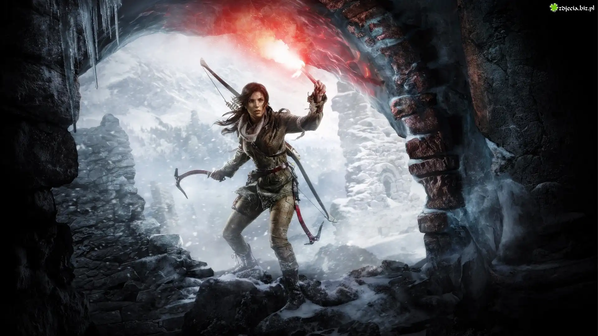 Zdjęcie Zima, Góry, Jaskinia, Kobieta, Wojowniczka, Tomb Raider