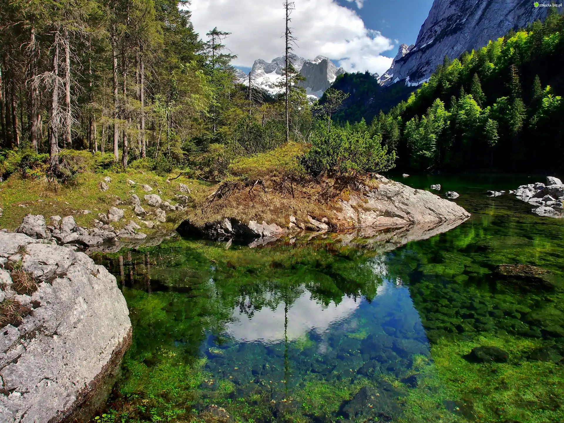 Zdjęcie Jezioro, Gosau, Las, Góry, Światło, Cień, Odbicie