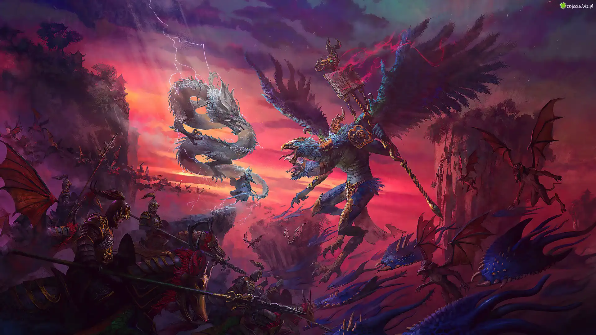 Zdjęcie Gra, Total War Warhammer 3, Gryf, Smok, Rycerze, Walka, Potwory