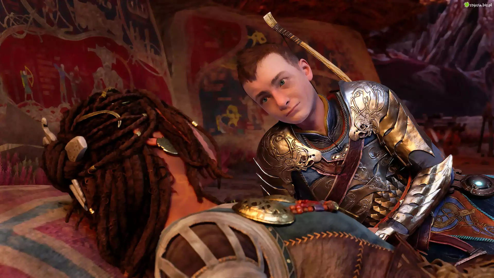 Zdjęcie Gra, God of War Ragnarok, Postacie, Freya, Atreus, Zbroja, Łuk