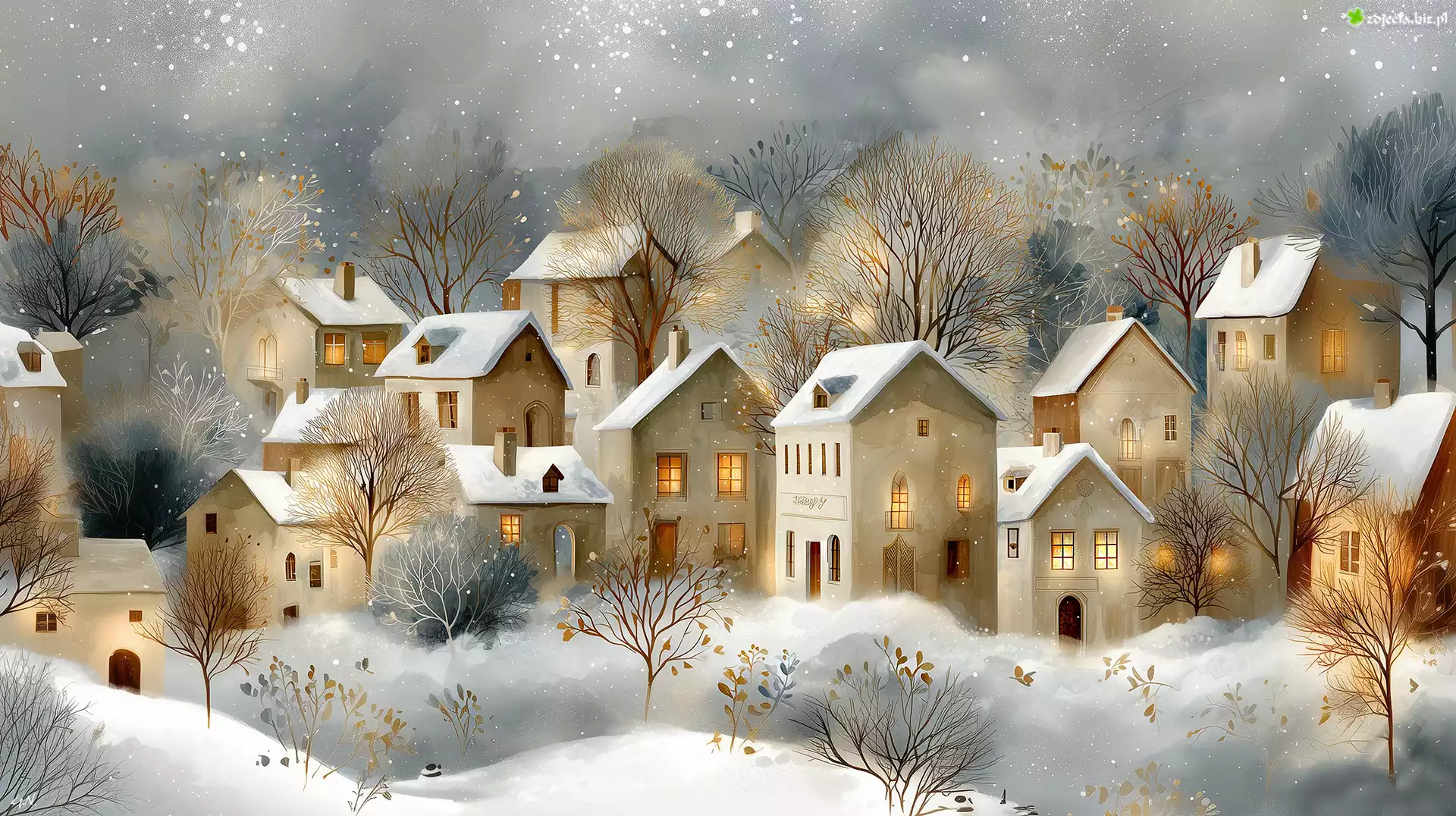 Zdjęcie, Śnieg, Grafika AI, Domy, Zima