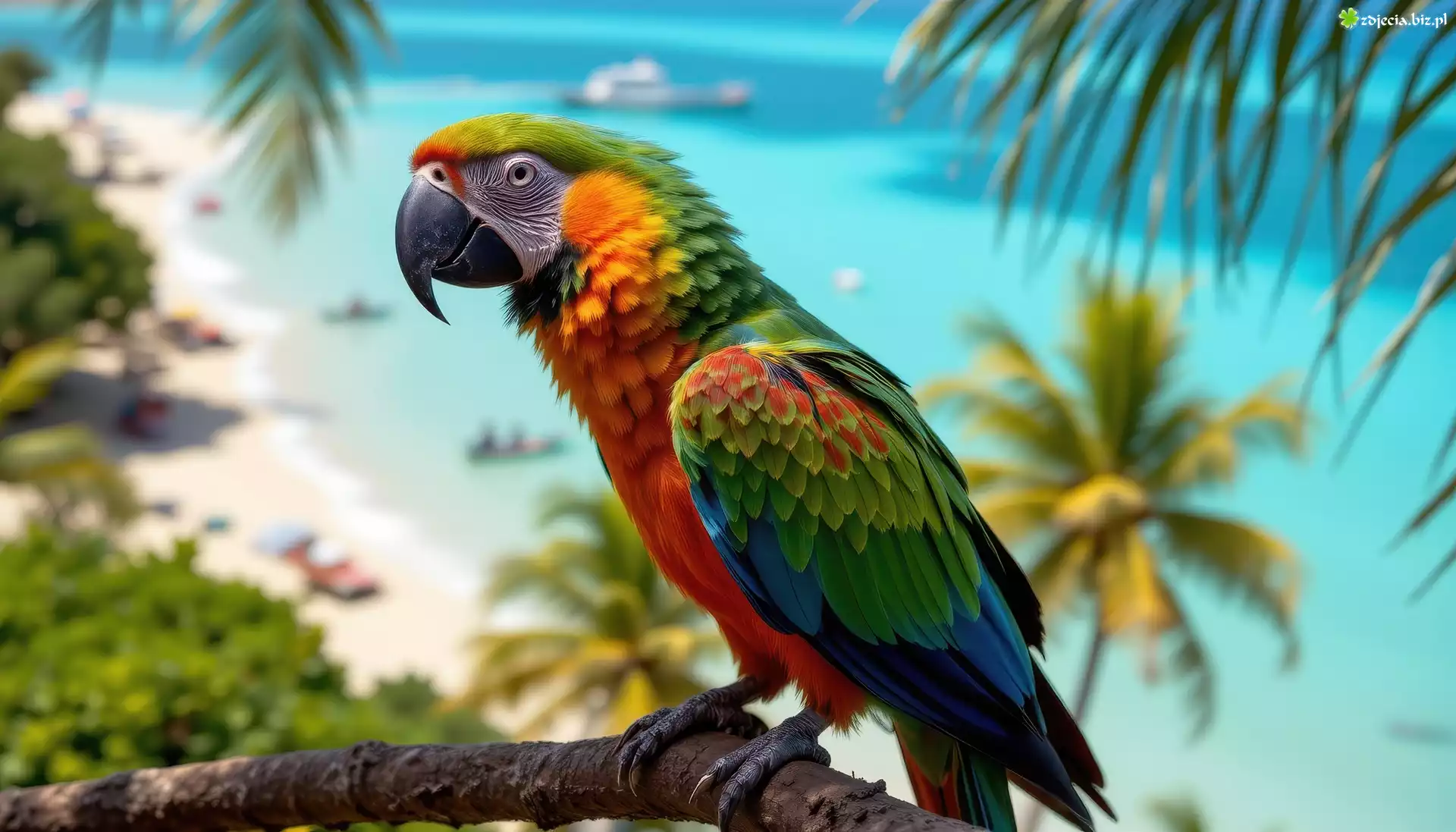 Zdjęcie Ara, Papuga, Gałąź, Grafika
