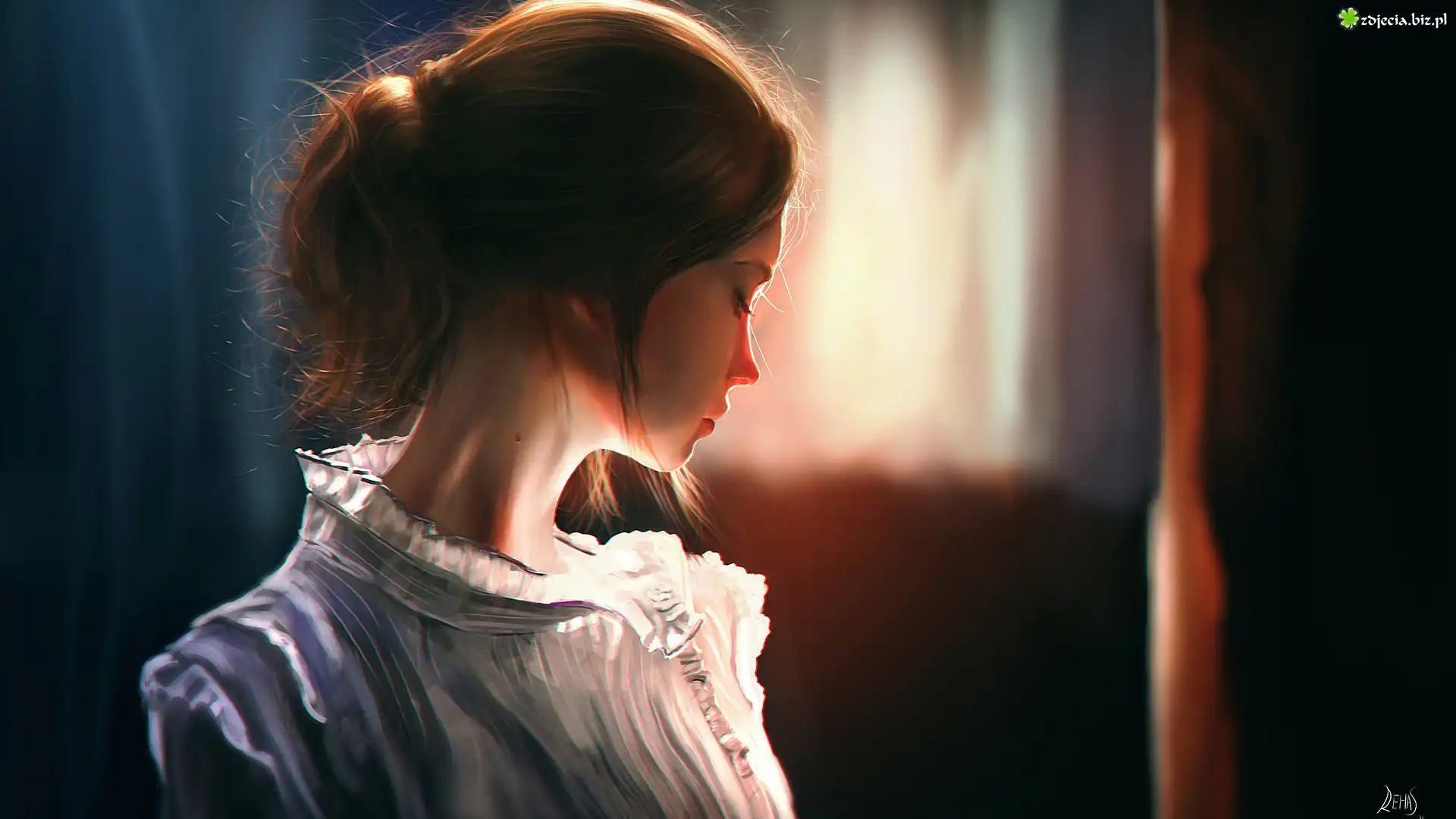 Zdjęcie, Grafika, Kobieta, Szatynka, Biała, Bluzka