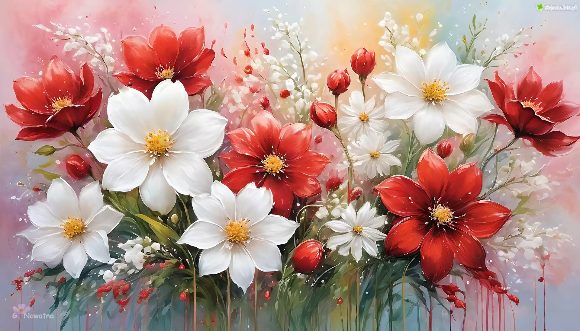 Zdjęcie Białe, Czerwone, Kwiaty, Grafika
