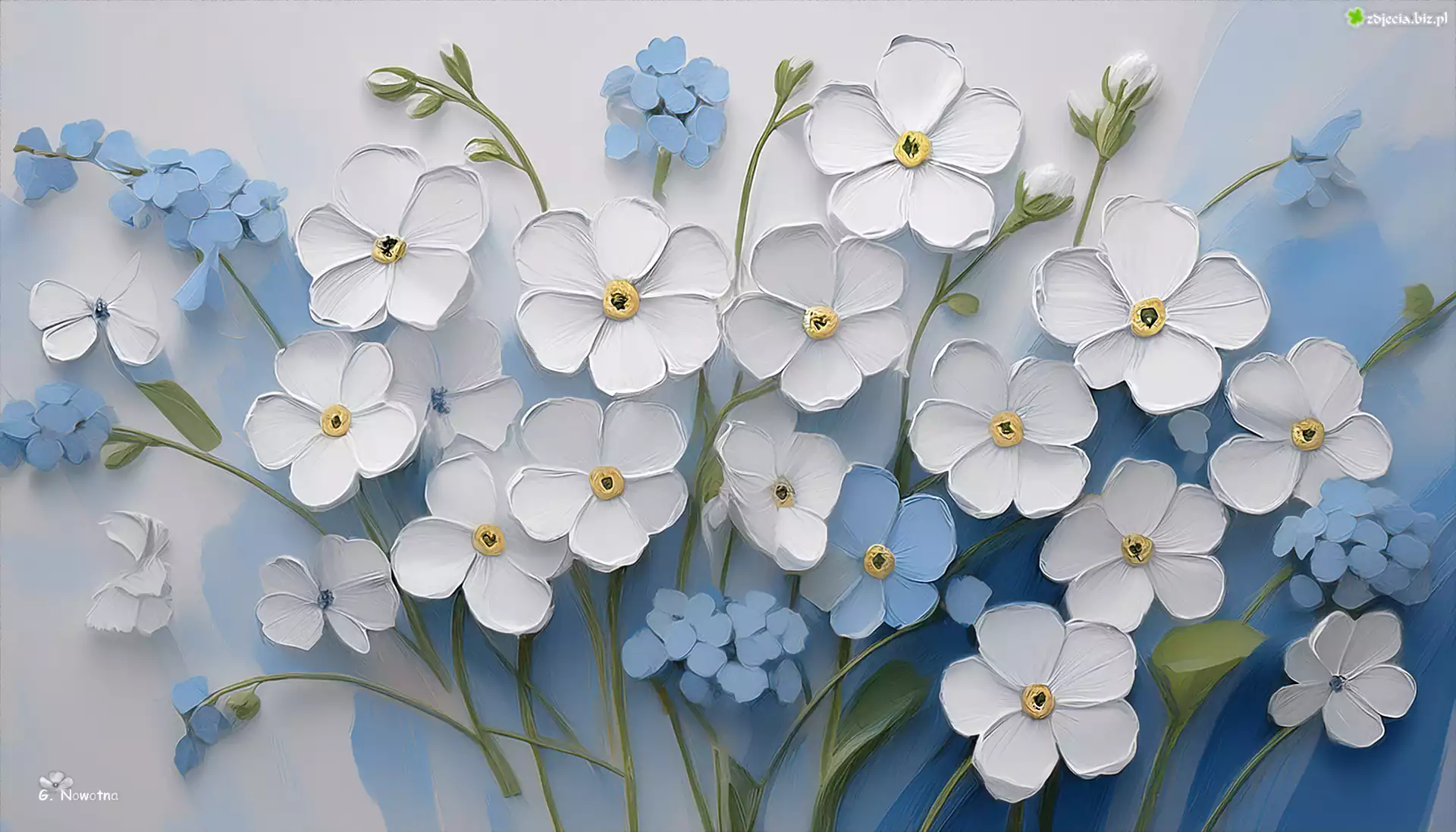 Zdjęcie Białe, Niebieskie, Kwiaty, Grafika