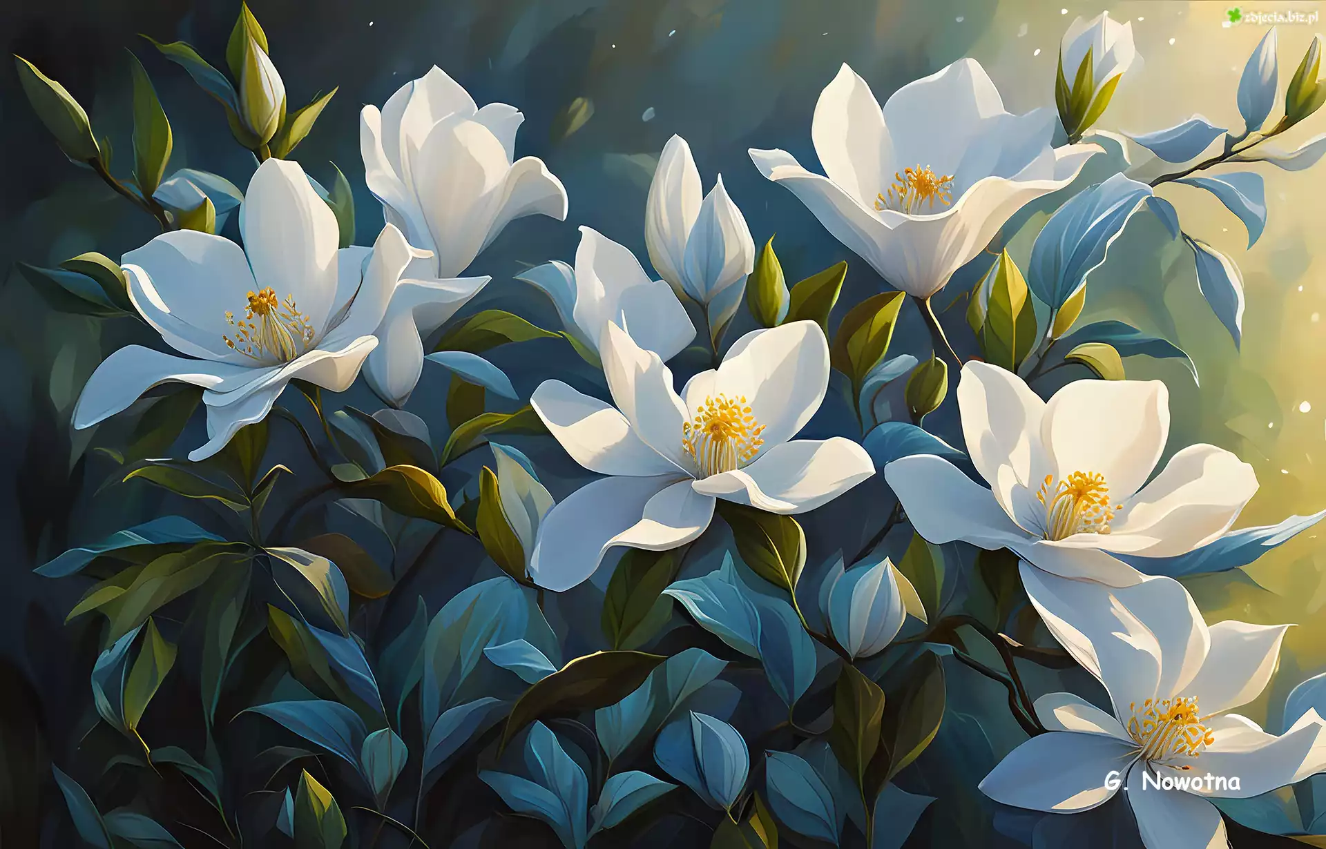 Zdjęcie Białe, Kwiaty, Magnolie, Grafika