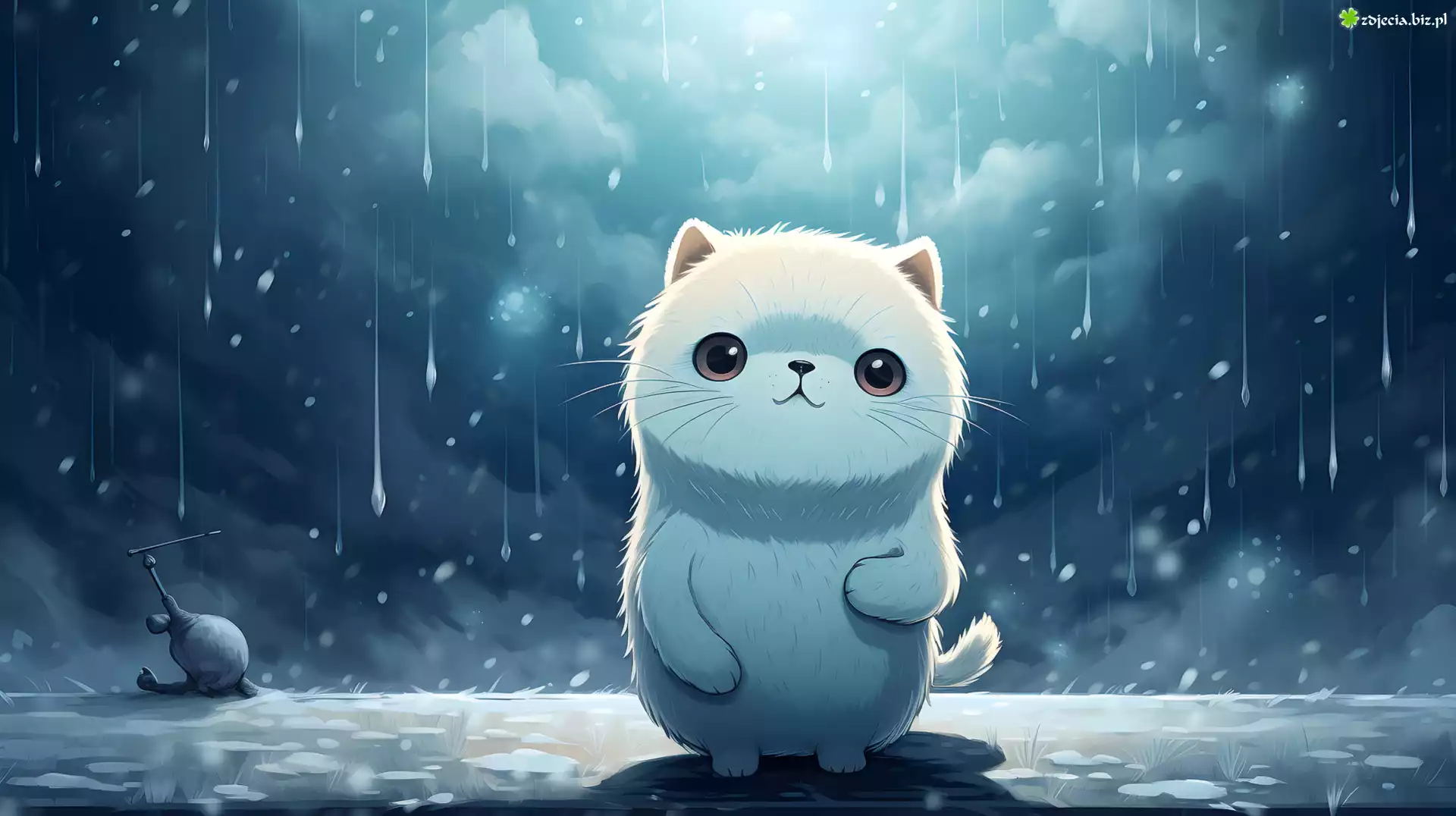 Zdjęcie Biały, Kot, Deszcz, Grafika