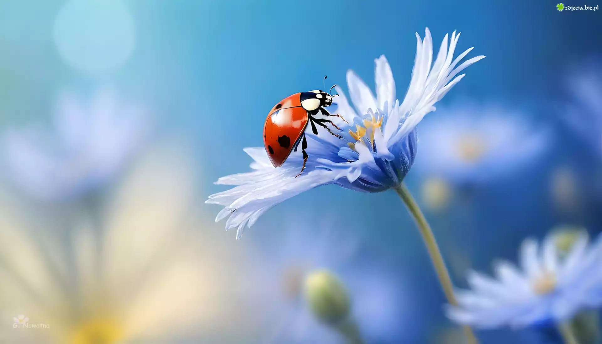 Zdjęcie Biedronka, Niebieski, Kwiat, Grafika