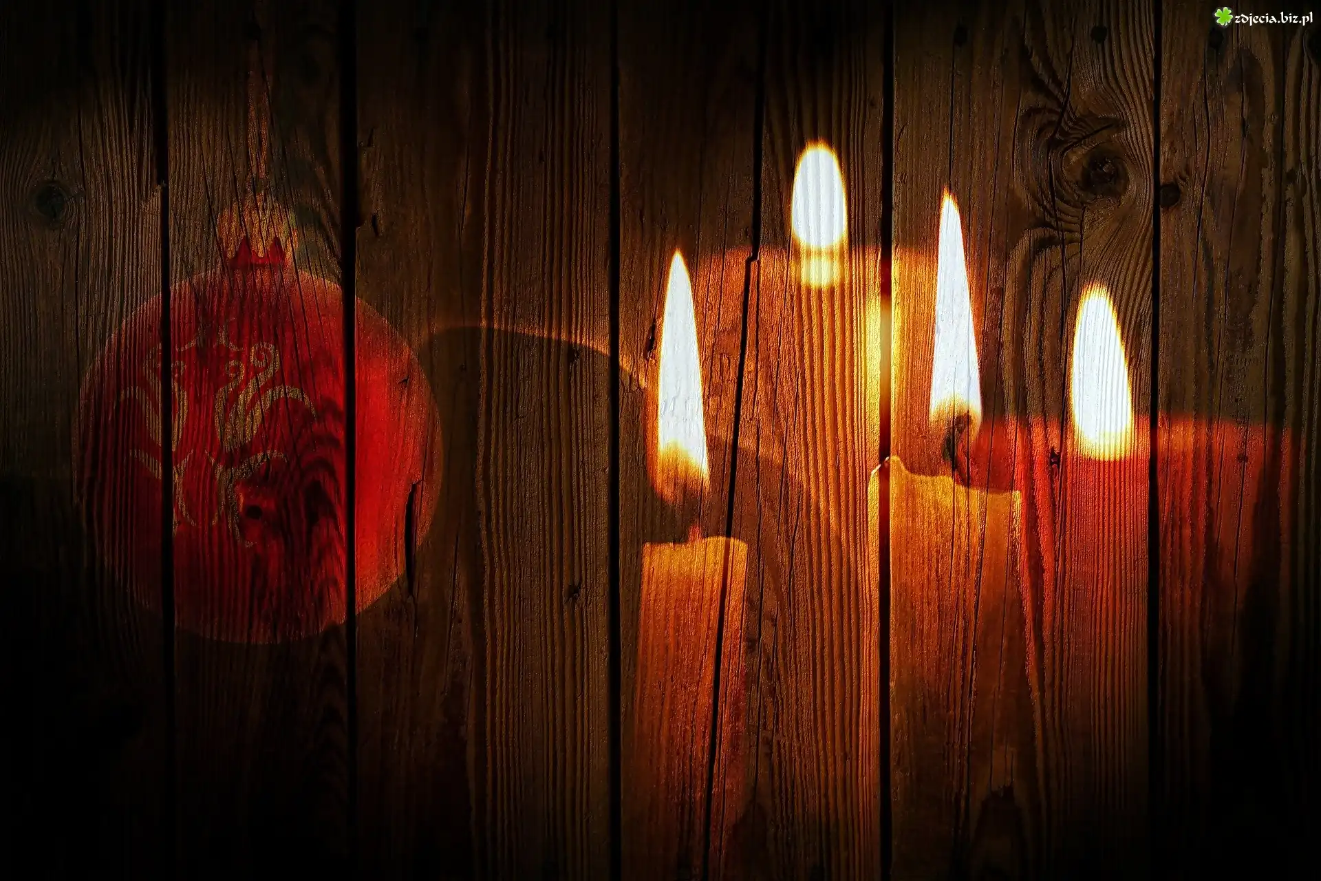 Zdjęcie Świece, Bombka, Grafika, Deski