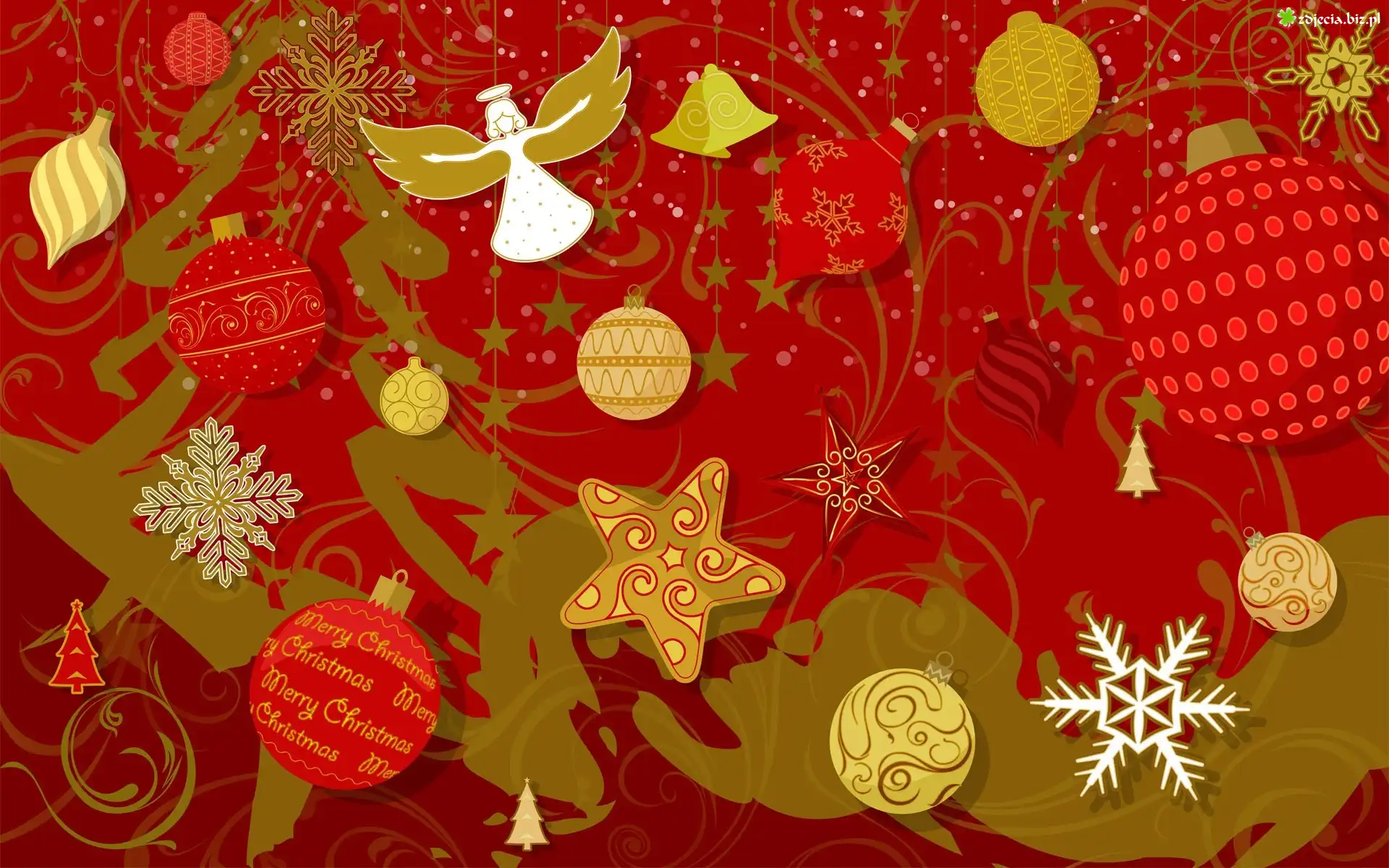 Zdjęcie Grafika, Bożonarodzeniowa, Anioł, Bombki, Ozdoby