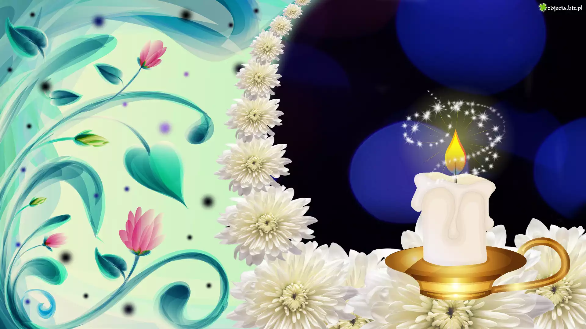 Zdjęcie Świeca, Chryzantemy, Ornament, Grafika, Zaduszki