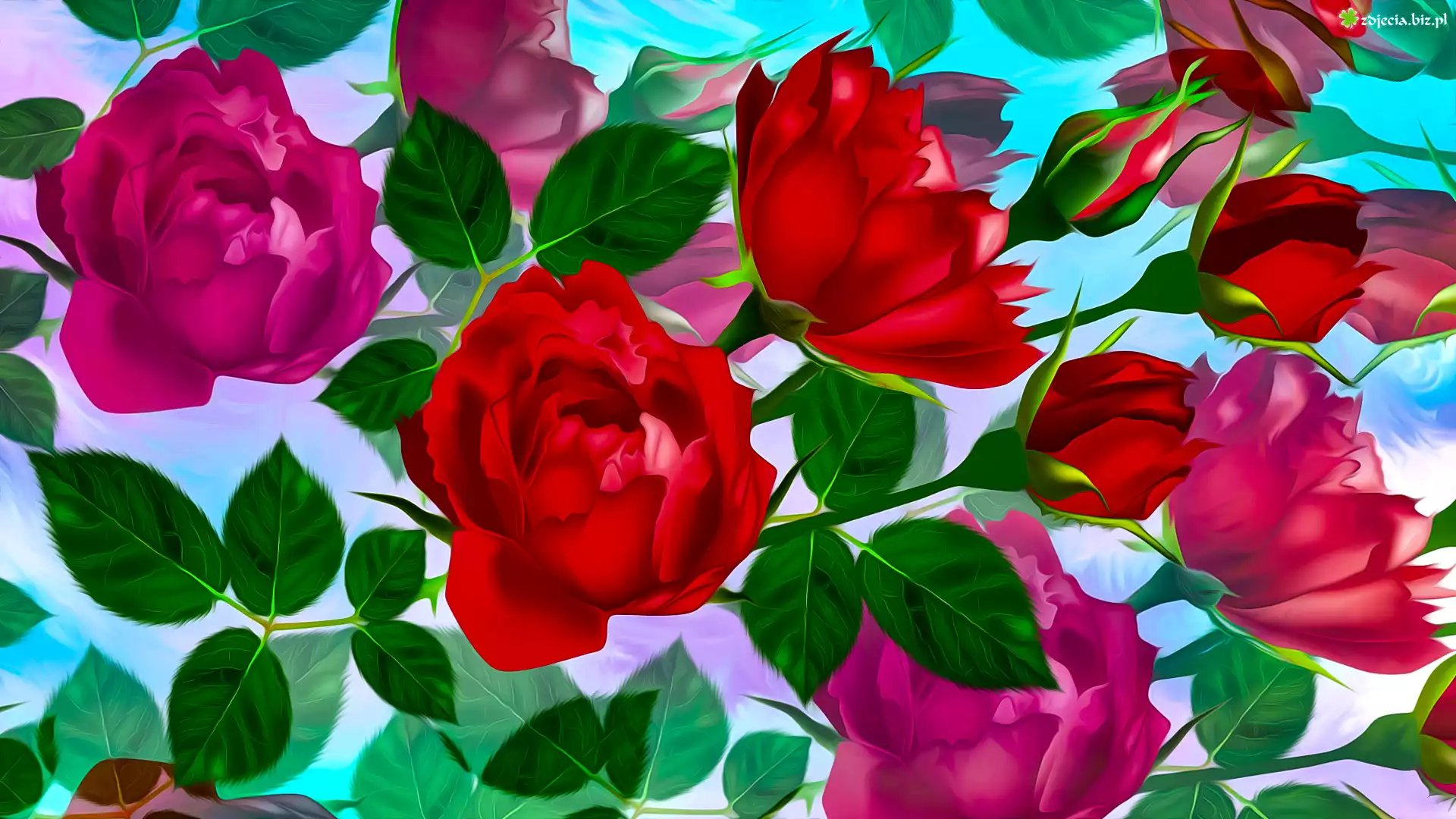 Zdjęcie Grafika, Kwiaty, Czerwone, Róże