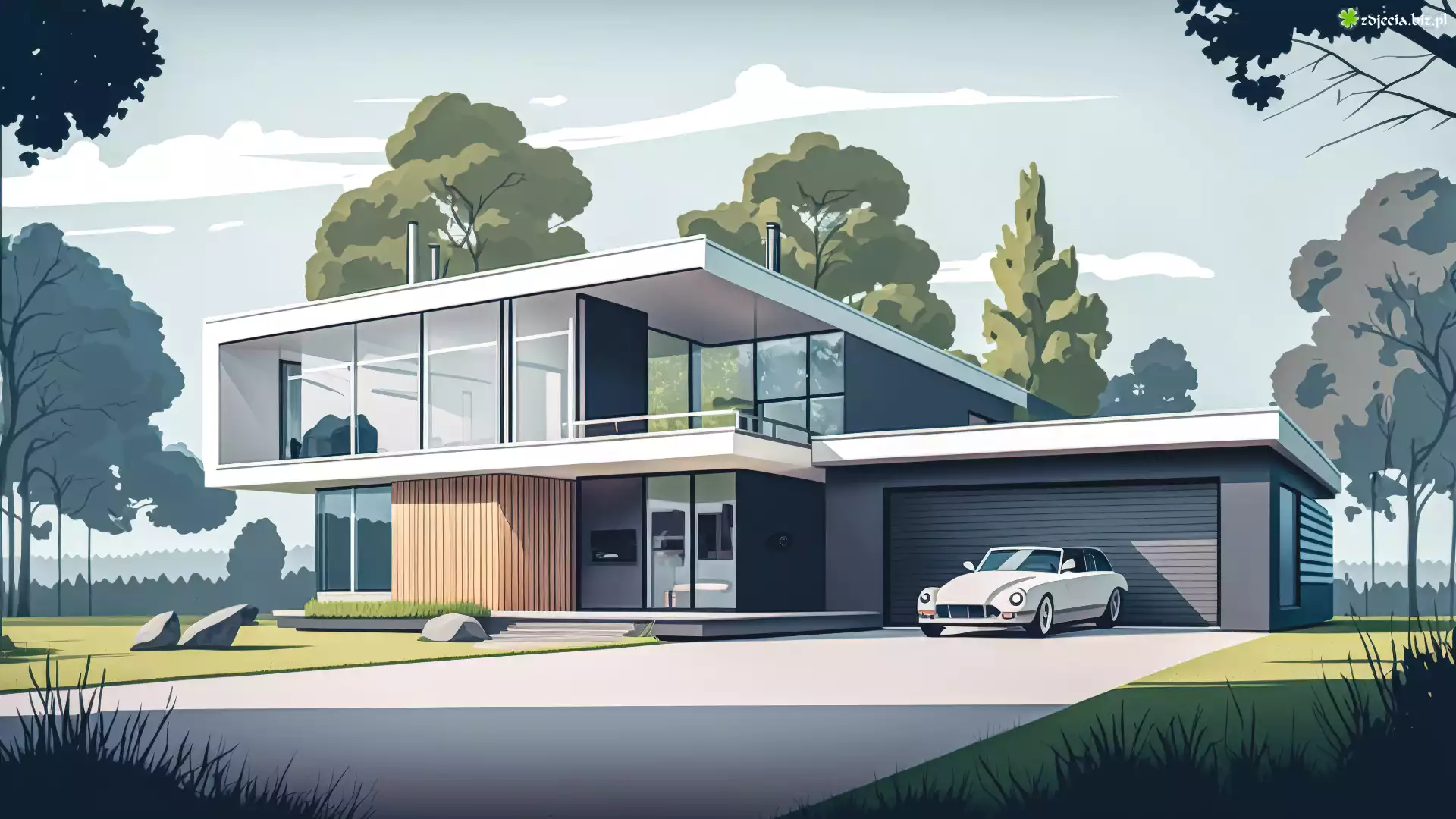 Zdjęcie Dom, Garaż, Samochód, Grafika