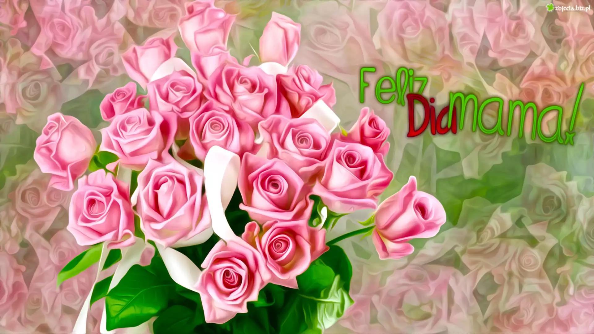 Zdjęcie Kwiaty, Róże, Dzień Matki, Napis, Feliz Dia Mama, Grafika