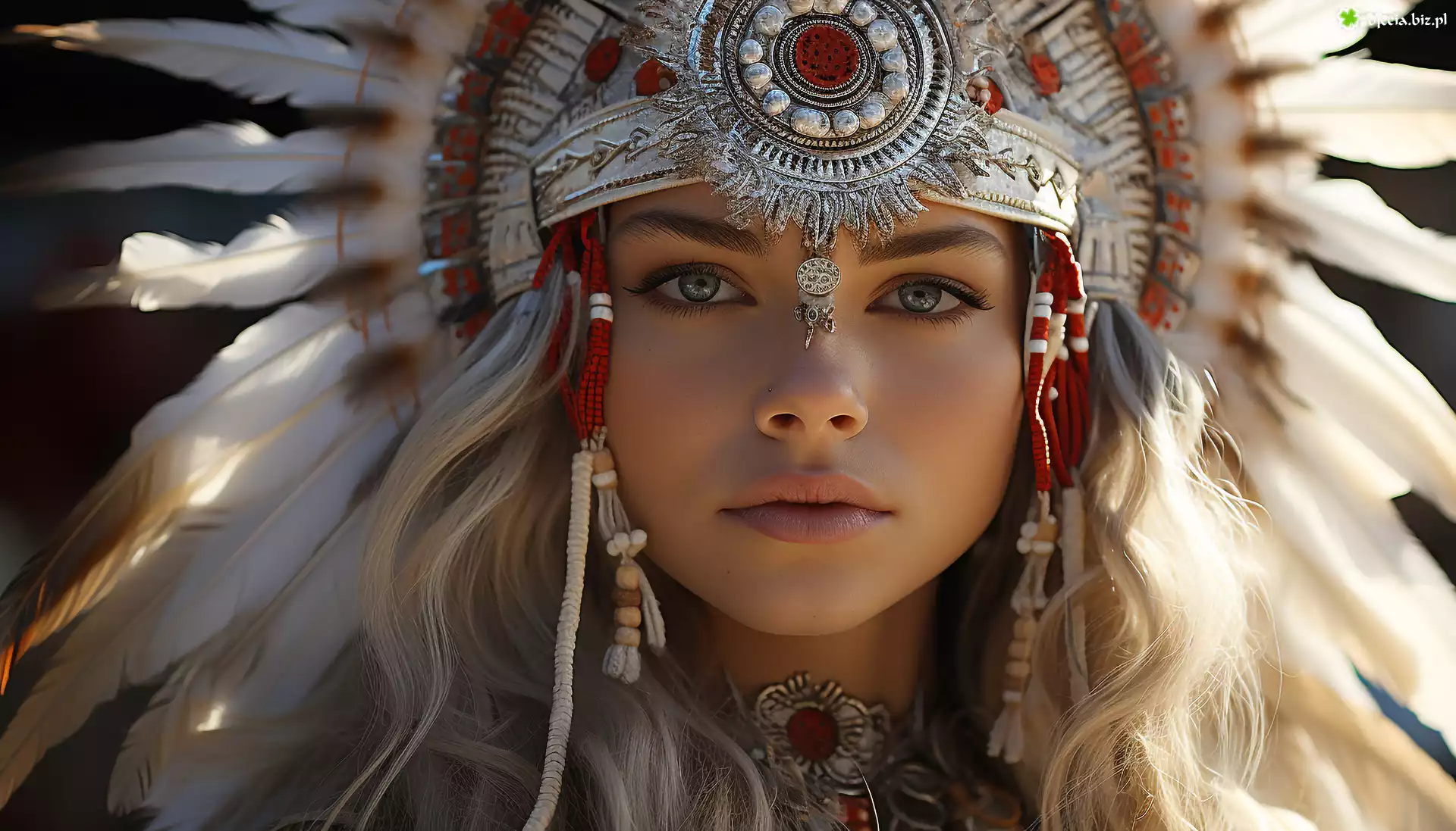Zdjęcie Dziewczyna, Spojrzenie, Pióropusz, Grafika